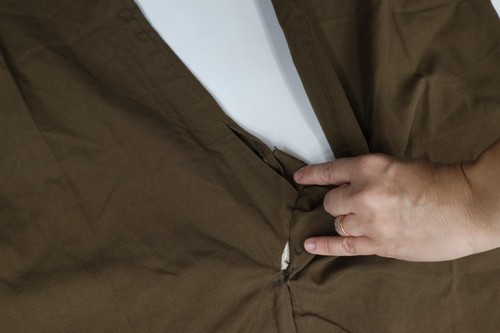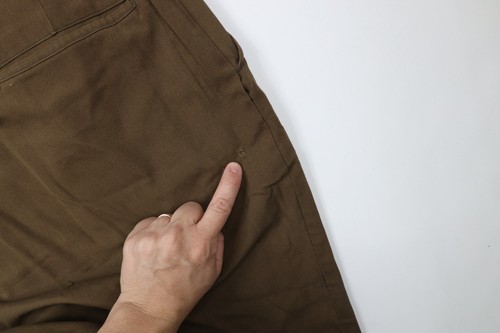 Thrashed. Holes inner legs. Mended hole right leg. Distressed and faded. USA made
