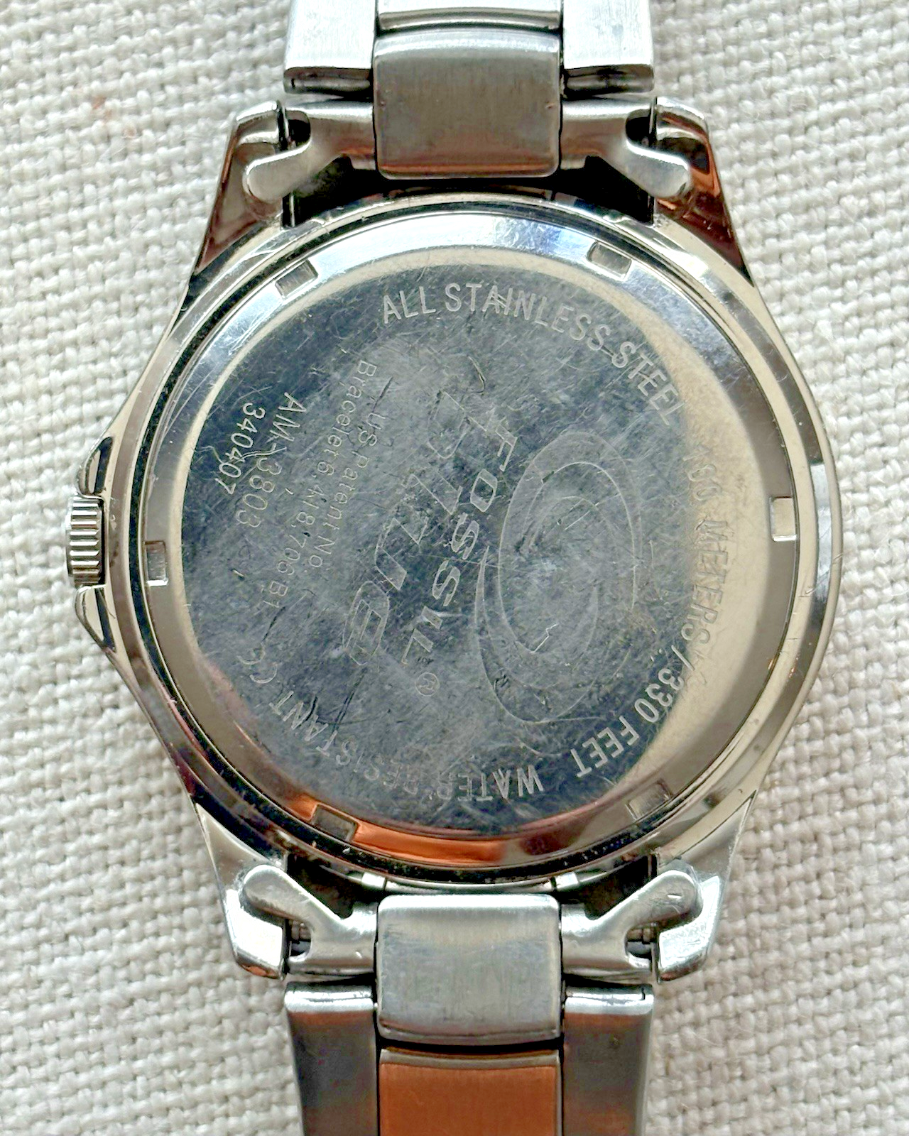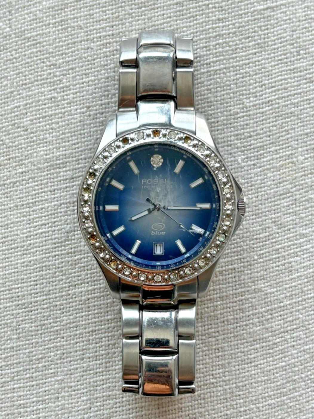 Vintage Fossil Blue (AM-3803) Stainless Steel w/Blue Dial Unisex Watch - (AS-IS)
