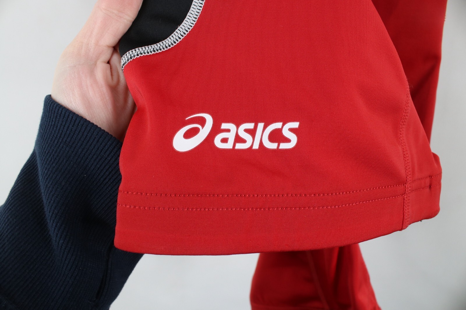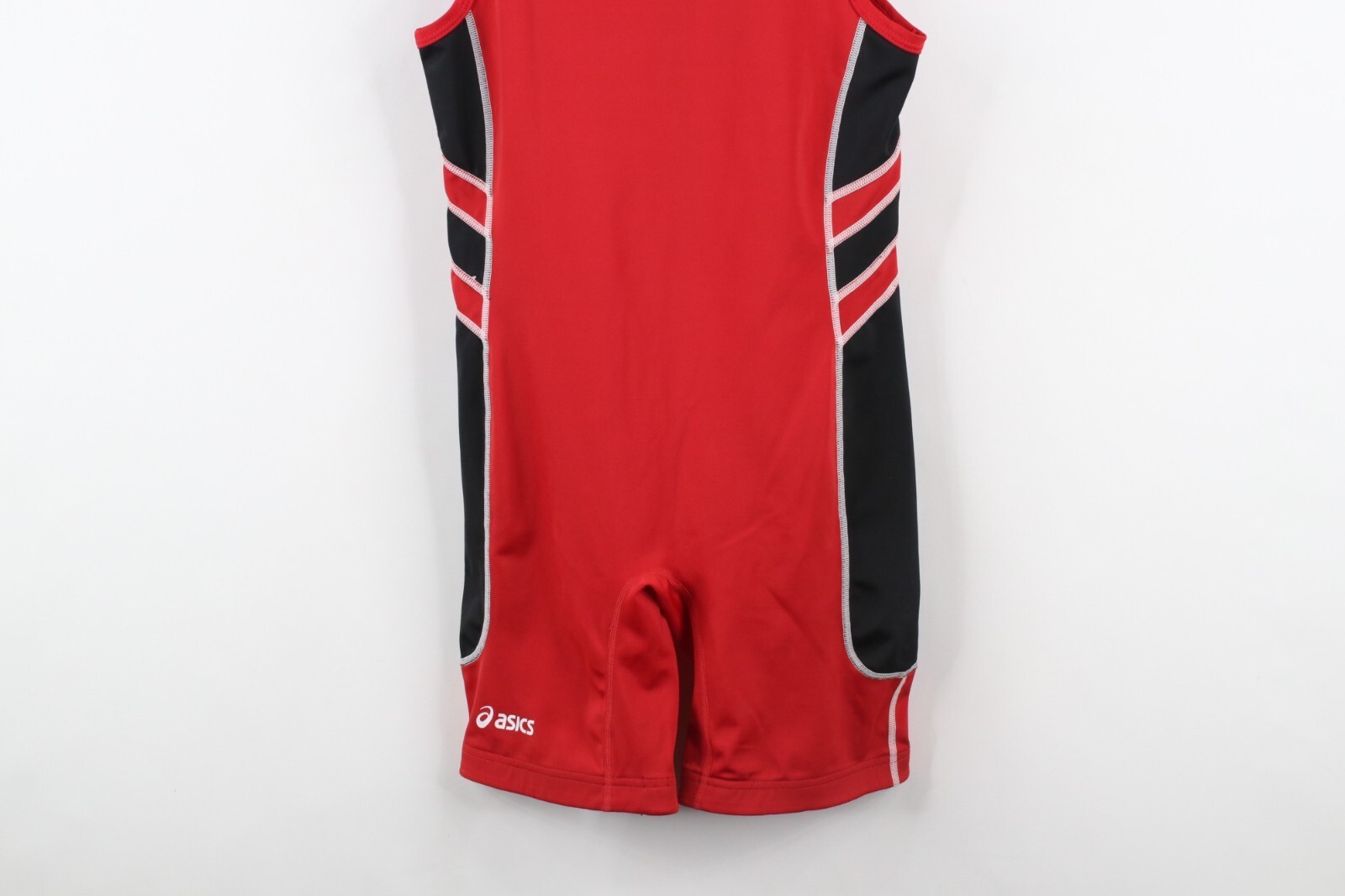Vintage ASICS Mens Small Spell Out Color Block Wrestling Singlet Uniform Red