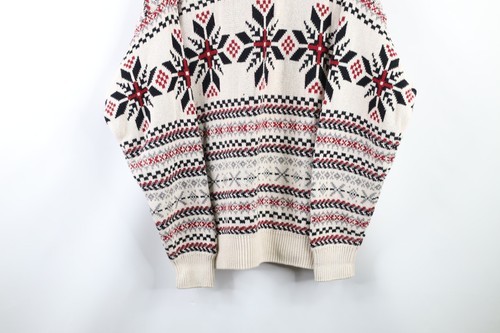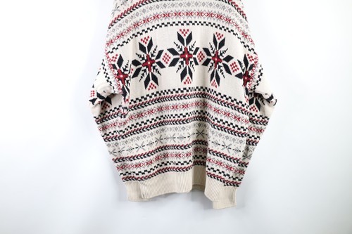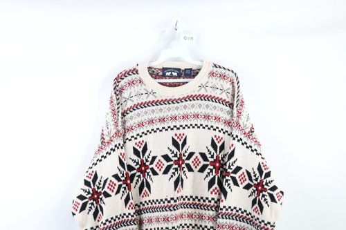 Vintage 90s Streetwear Mens XL Distressed Nordic Fair Isle Knit Crewneck Sweater