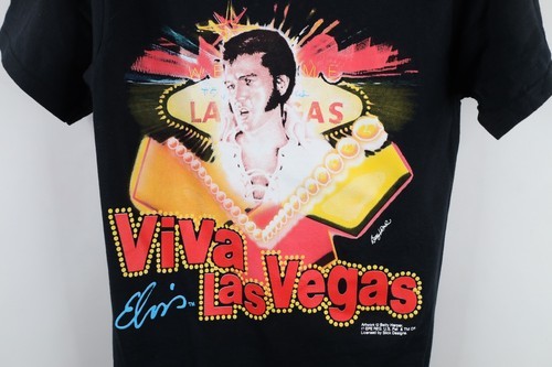 Deadstock Vtg 90s Womens Small Spell Out Viva Las Vegas Elvis Presley T-Shirt