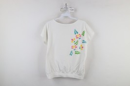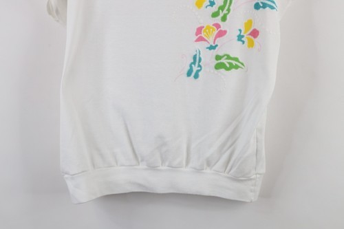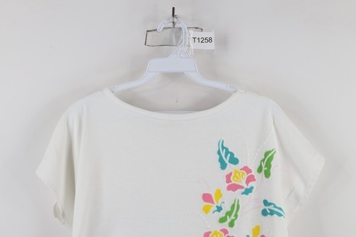 Vintage 80s 90s Streetwear Womens Large Flower Dolman Sleeve T-Shirt White USA