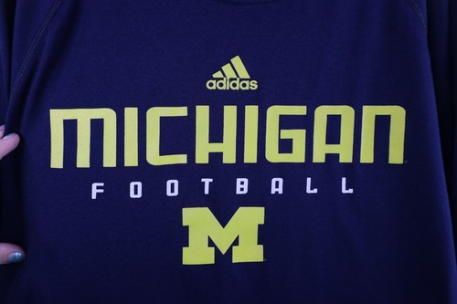 Adidas Mens Medium Team Issued University of Michigan Football T-Shirt Blue