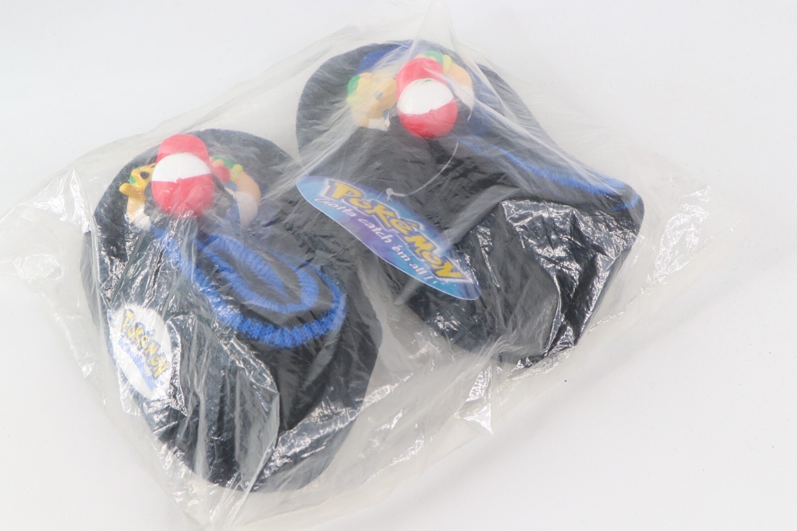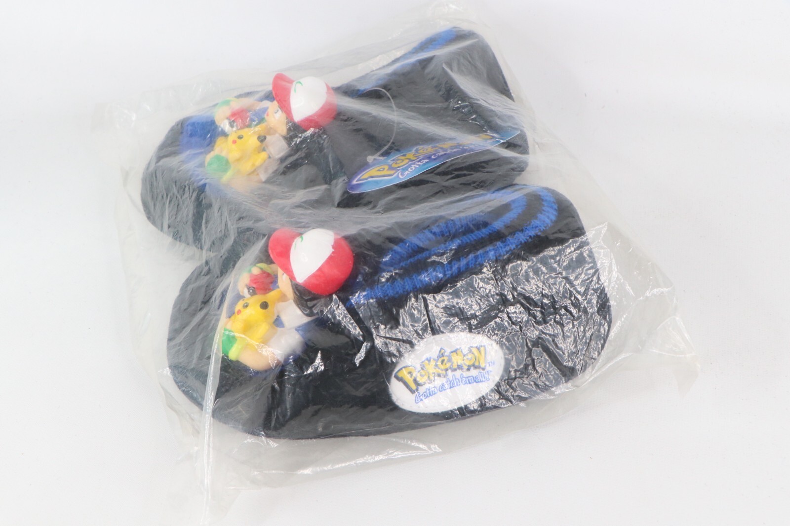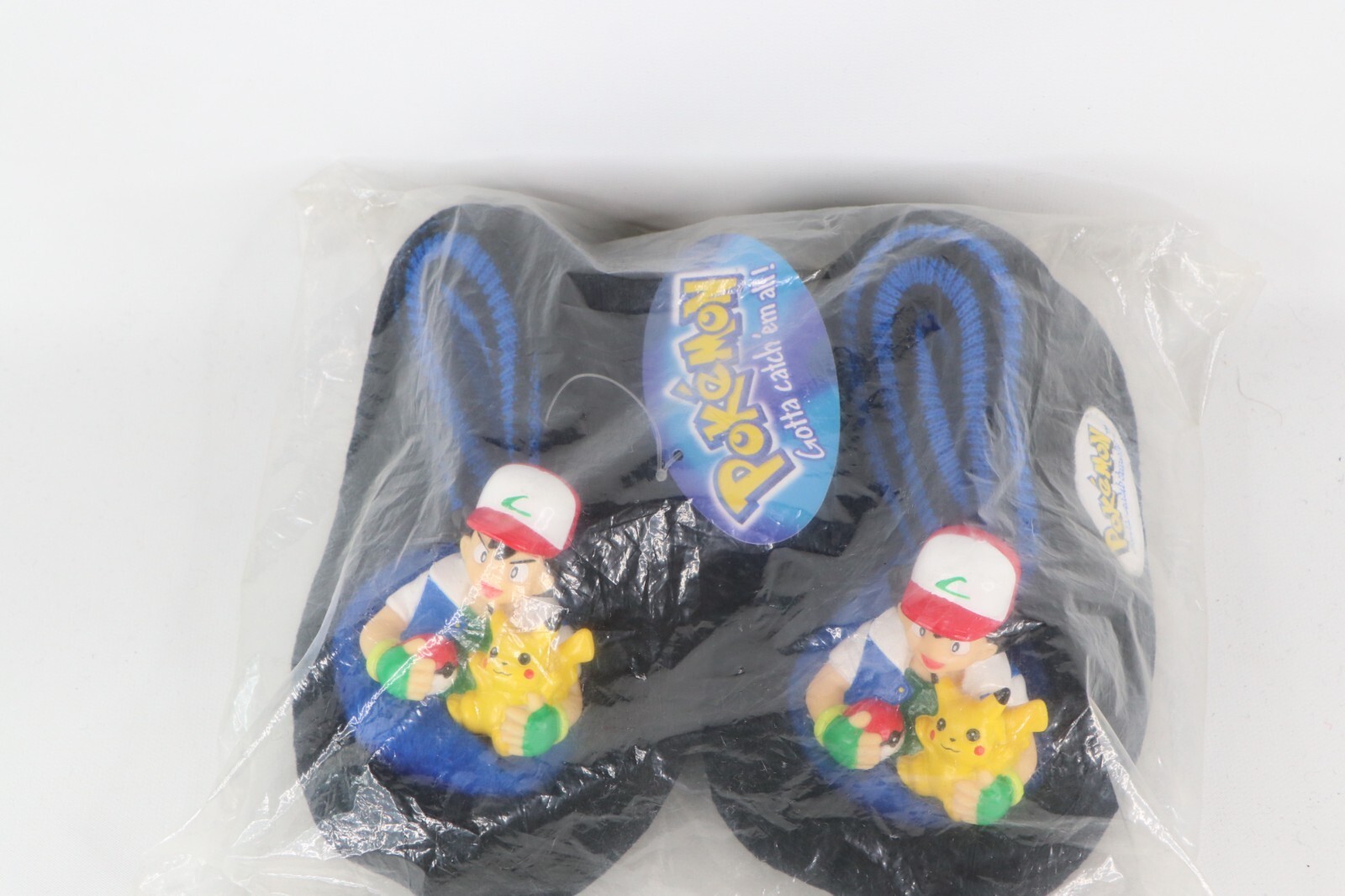NOS Vintage 90s Pokemon Ash Ketchum House Slippers Shoes Black Youth XL 11-12
