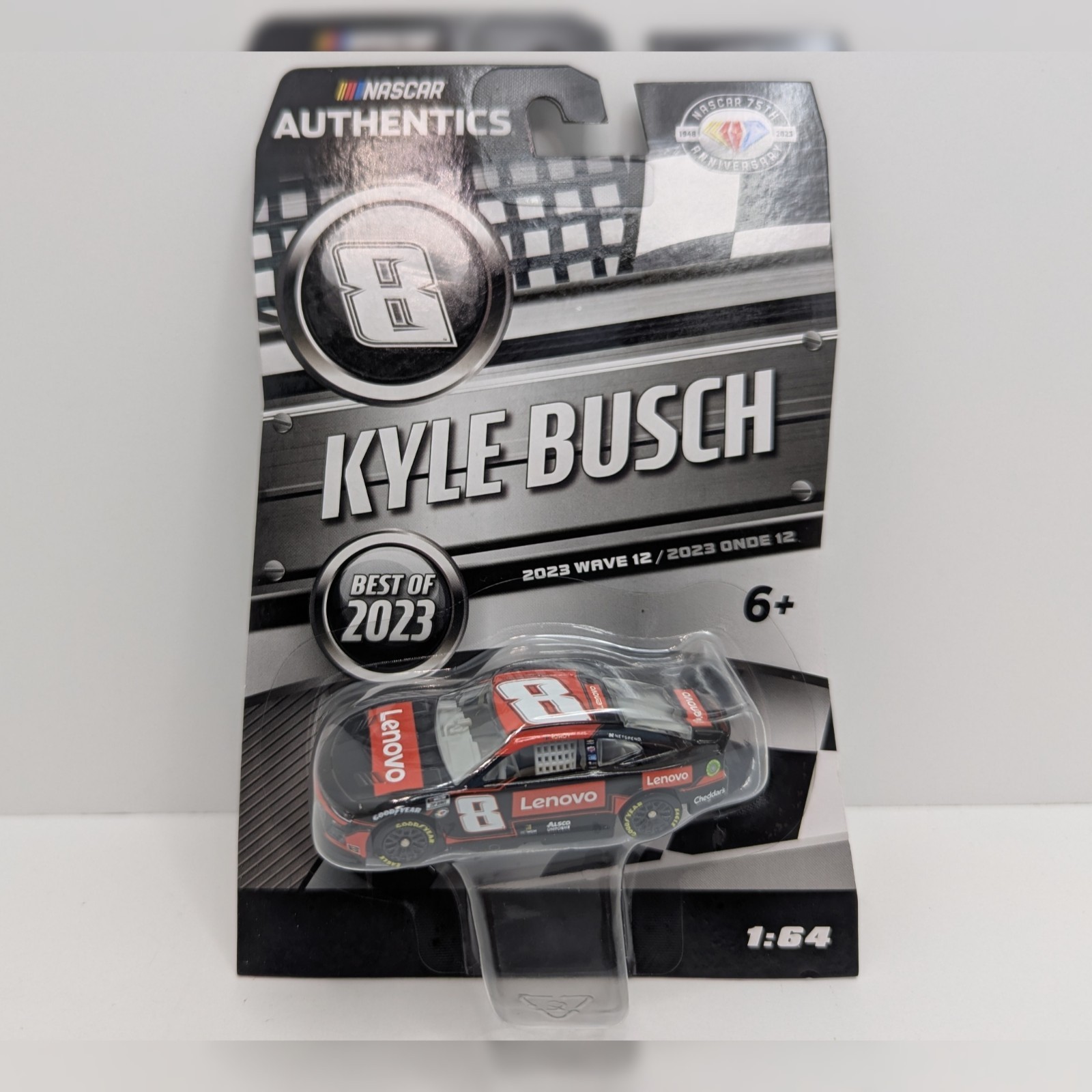 Official Lionel Racing NASCAR Authentics 1:64 diecast featuring Kyle Busch?s 2023 #8 Lenovo Chevrolet Camaro in the sleek black and red Wave 12 release. A must-have for Rowdy fans and collectors of the new-look RCR team era.