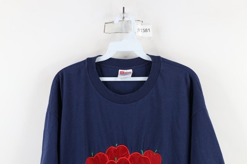 Vintage 90s Country Primitive Womens XL Faded Apple Orchard T-Shirt Navy Blue