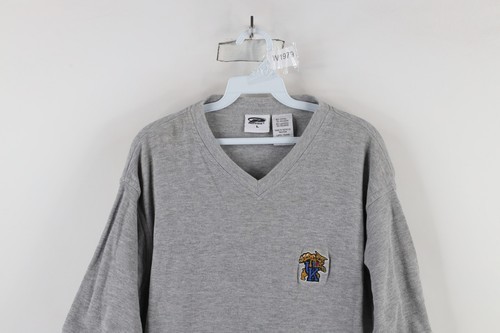 Vintage 90s Mens Large University of Kentucky Ribbed Knit V-Neck T-Shirt Gray