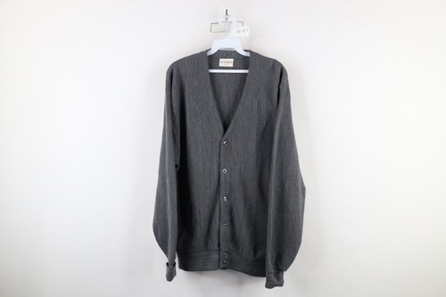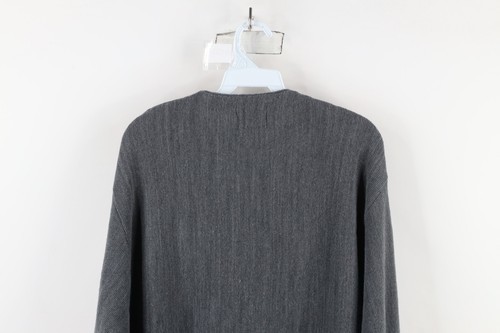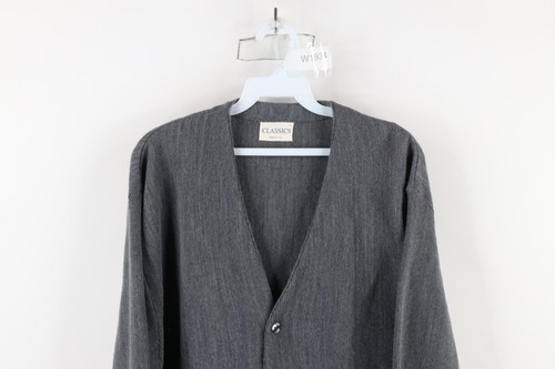 Vintage 90s Streetwear Mens Large Blank Knit Grandpa Cardigan Sweater Gray USA