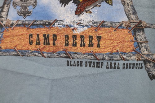 Vintage 90s Mens XL Faded Boy Scouts of America Camp Berry Eagle T-Shirt Blue