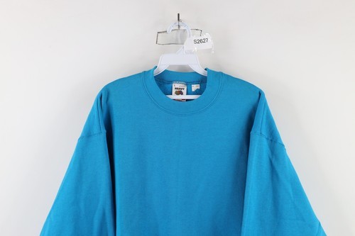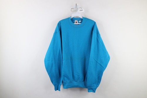 Deadstock Vtg 90s Streetwear Mens Large Blank Heavyweight Sweatshirt Blue USA