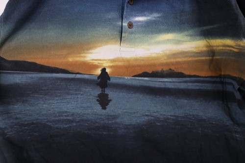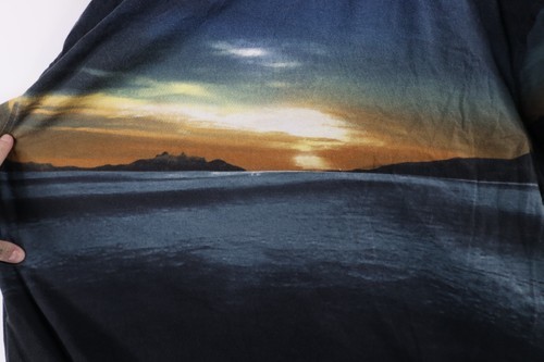 Vtg 90s Streetwear Mens 2XL Faded Beach Sunset All Over Print Golf Polo Shirt