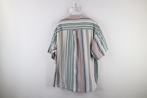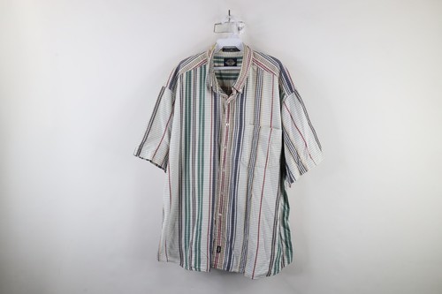 Vintage 90s Streetwear Mens XL Distressed Rainbow Checkered Button Down Shirt