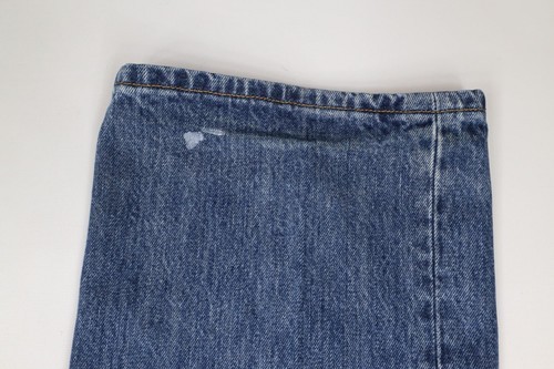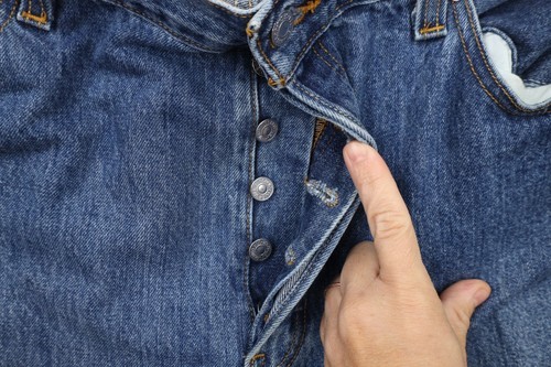 Blemishes both legs front and back. Distressed and faded. Button fly