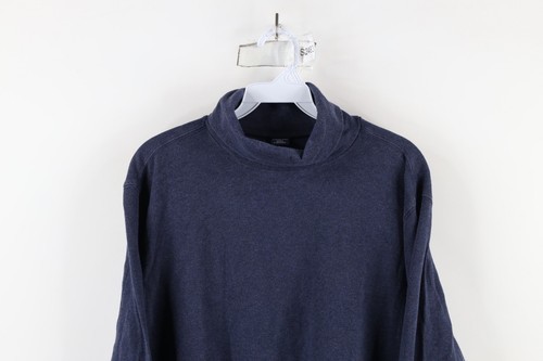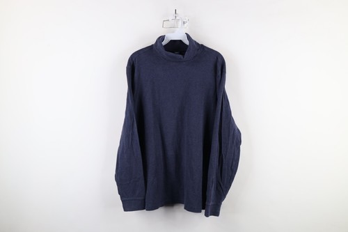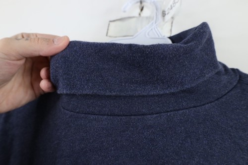 Vintage 90s Lands End Mens Large Faded Blank Long Sleeve Turtleneck T-Shirt Blue