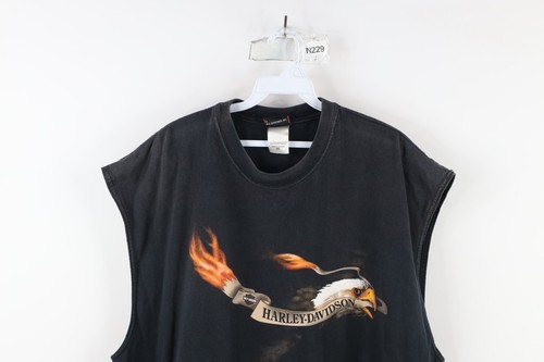 Vtg Y2K Harley Davidson Mens 2XL Distressed Spell Out Eagle Muscle T-Shirt USA