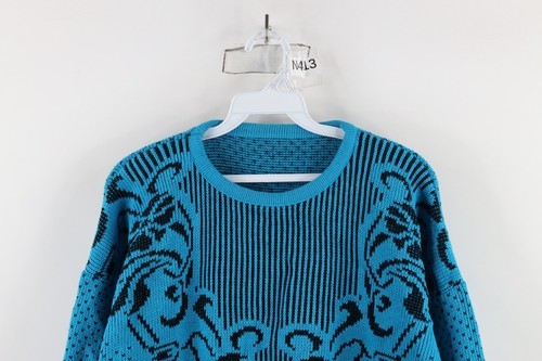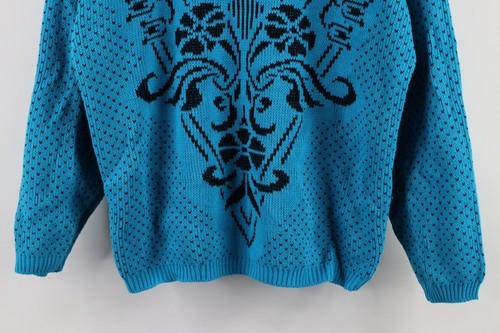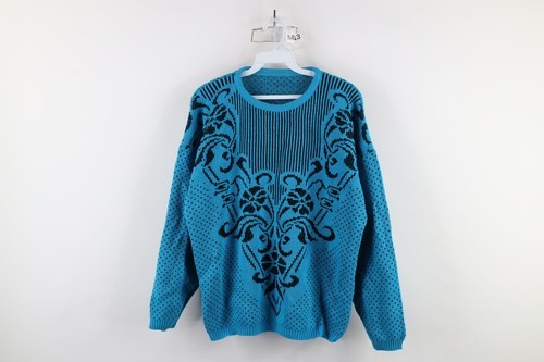 Vintage 90s Streetwear Womens XL Abstract Flower Geometric Knit Mom Sweater