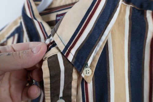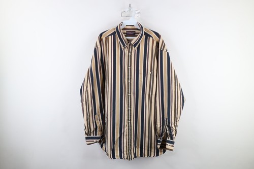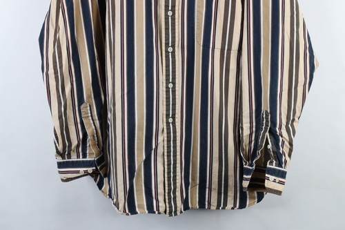 Vtg 90s Streetwear Mens XL Faded Earth Tone Striped Collared Button Down Shirt