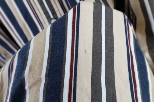 Color bleed throughout. Blemish front bottom, front top, and right sleeve. Color fade