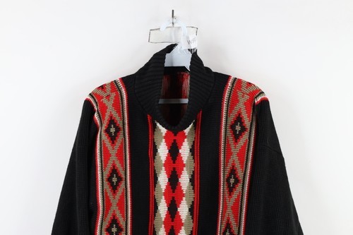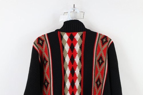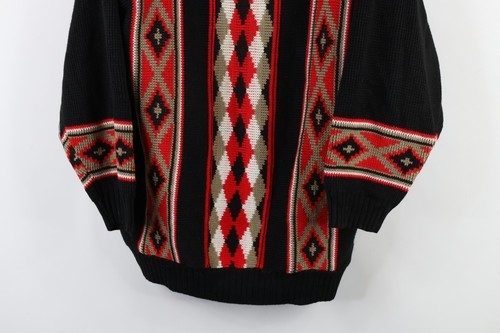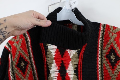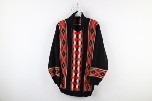 Vtg 60s 70s Mid Century Modern MCM Womens 16 Diamond Mock Neck Knit Sweater USA