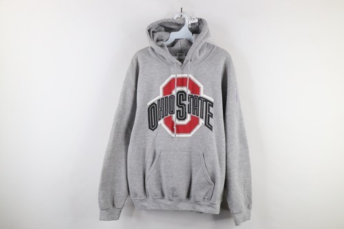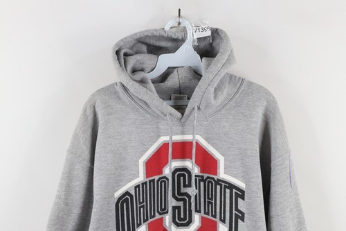Vintage 90s Mens Medium Spell Out Ohio State University Hoodie Sweatshirt Gray