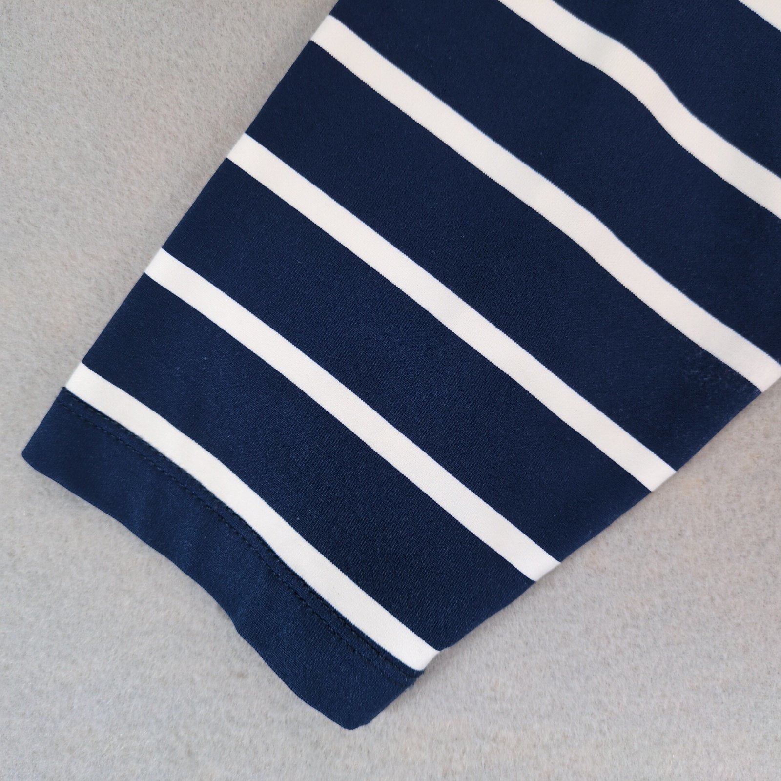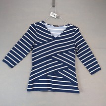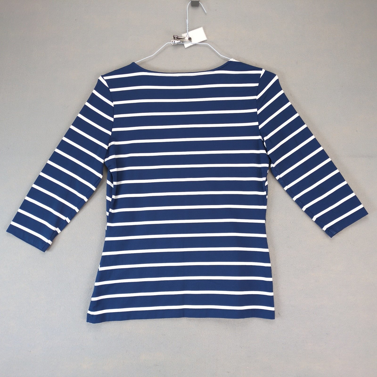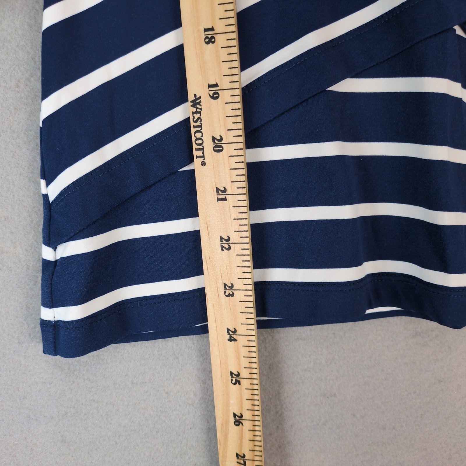 J. McLaughlin Asymetrical Layered Blue White Striped Top Women's M Scuba Stretch