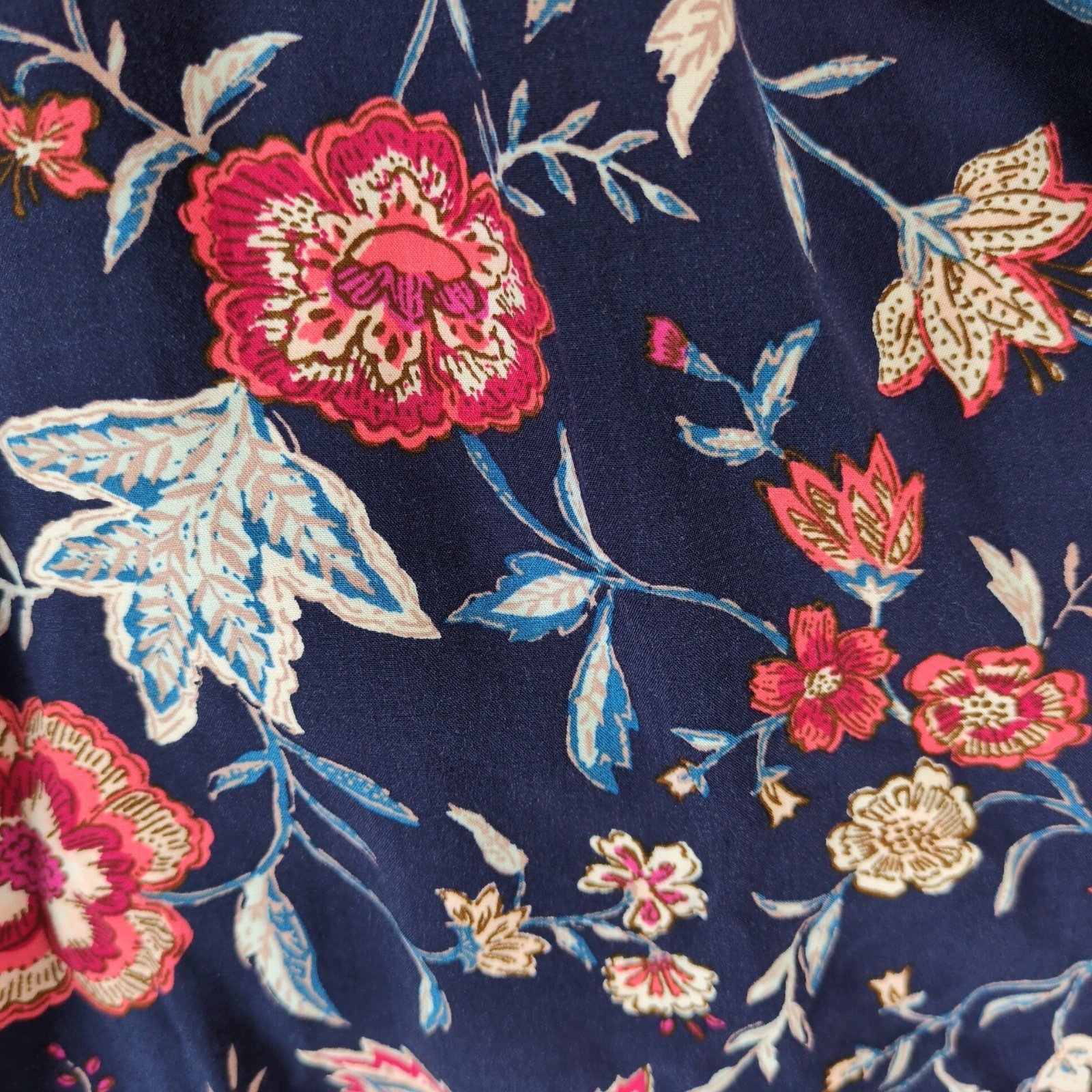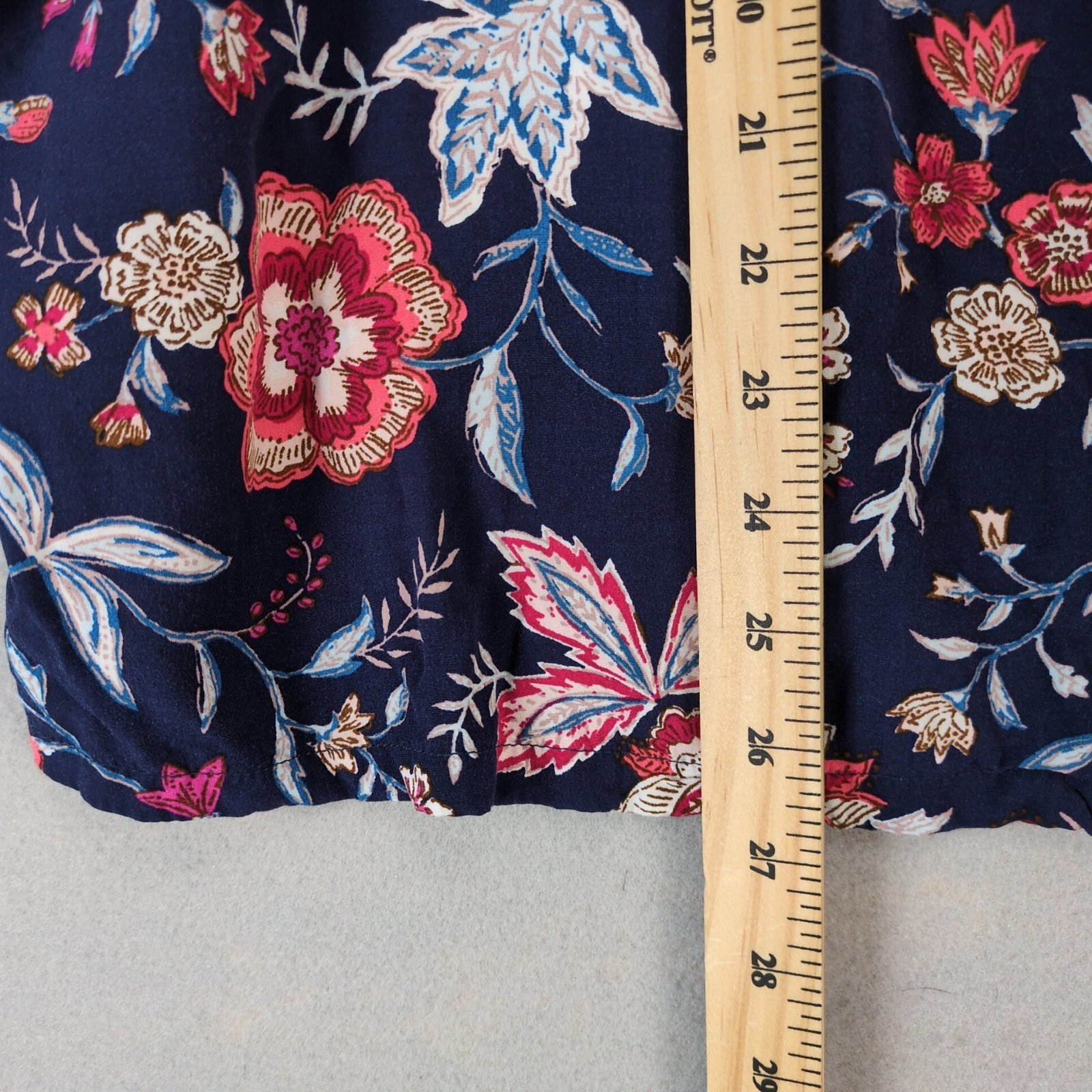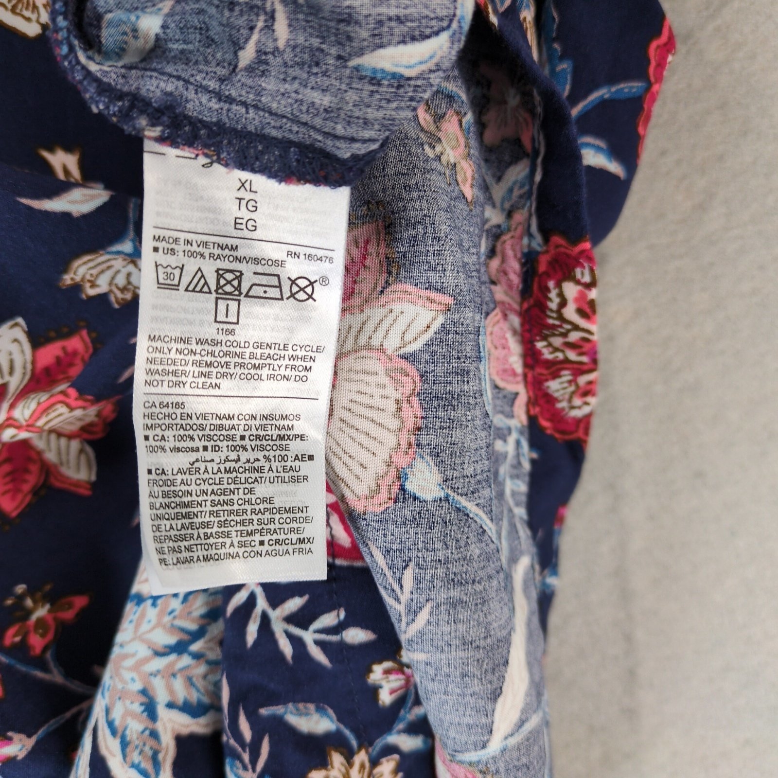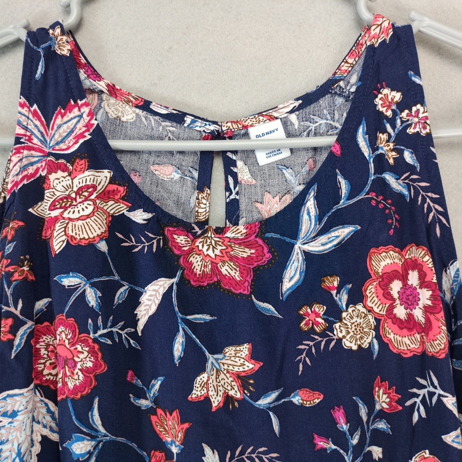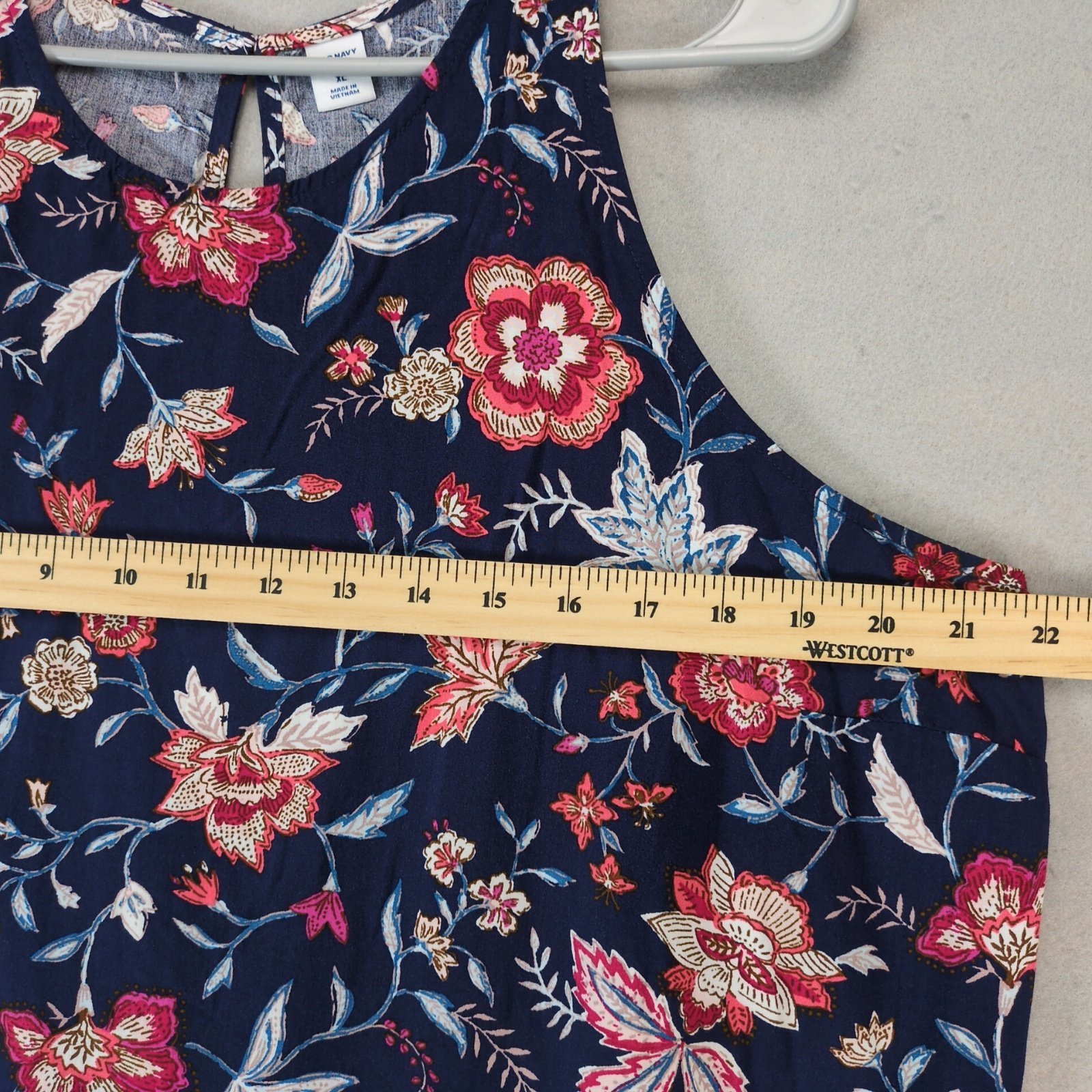 Old Navy Blue Floral Print Rayon Tank Top Women's XL Button Back A-Line Flowy