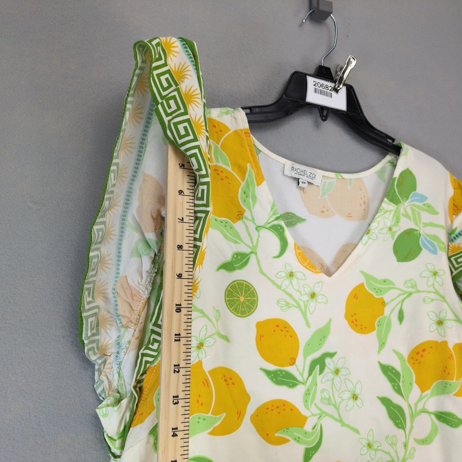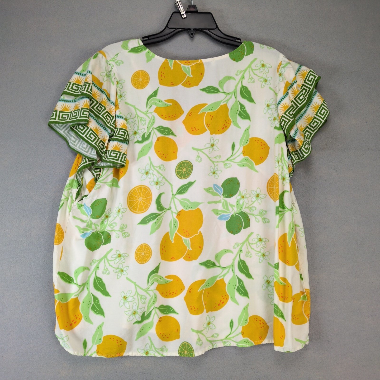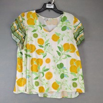 Rachel Zoe Floral Citrus Lemon Print Blouse Women's Plus Sz 2X Flutter Slv Retro