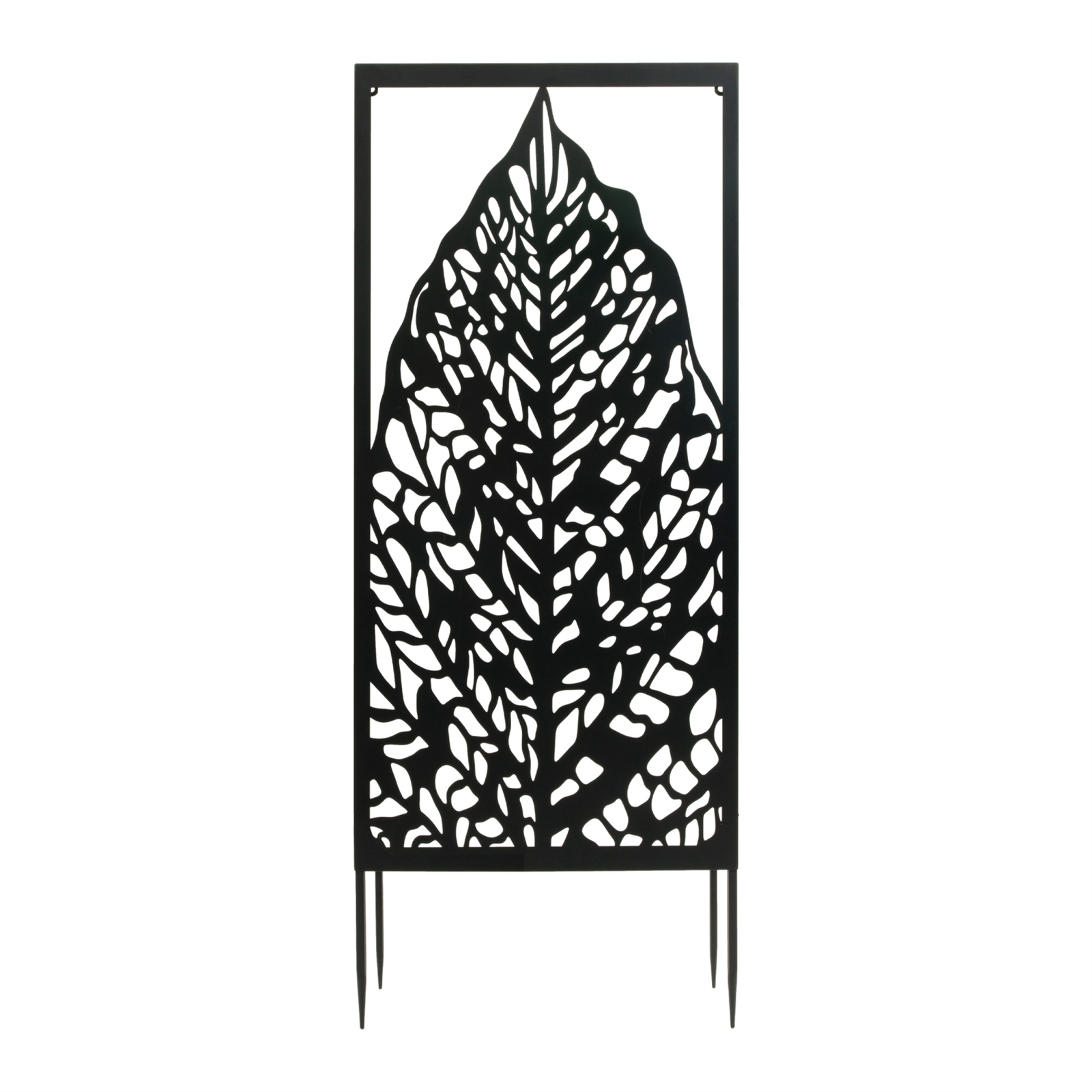 Elegant Cutout Design: Nature-inspired leaf motif adds artistic detail and visual interest to garden or patio spaces. Durable Black Iron Construction: Made from sturdy iron with a black powder-coated finish for long-lasting outdoor use. Versatile Outdoor Use: Ideal for privacy, sectioning off spaces, or as decorative accents in flower beds, walkways, or balconies. Suitable for indoor use only.
