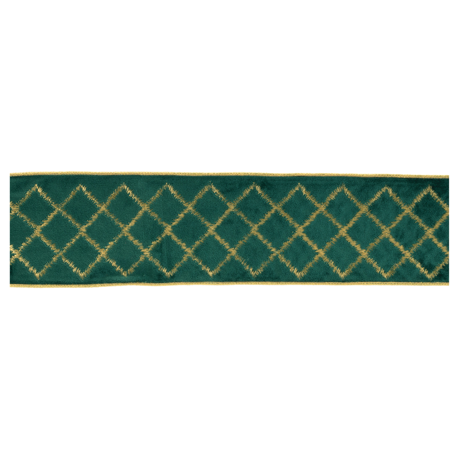 Green w/Gold Lattice Ribbon 4" x 5 Yds.