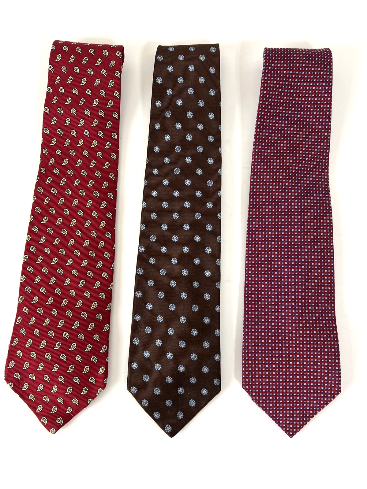 Brooks Brothes Tie LOT 3 100% Silk Multicolor Brown Red Blue Yellow