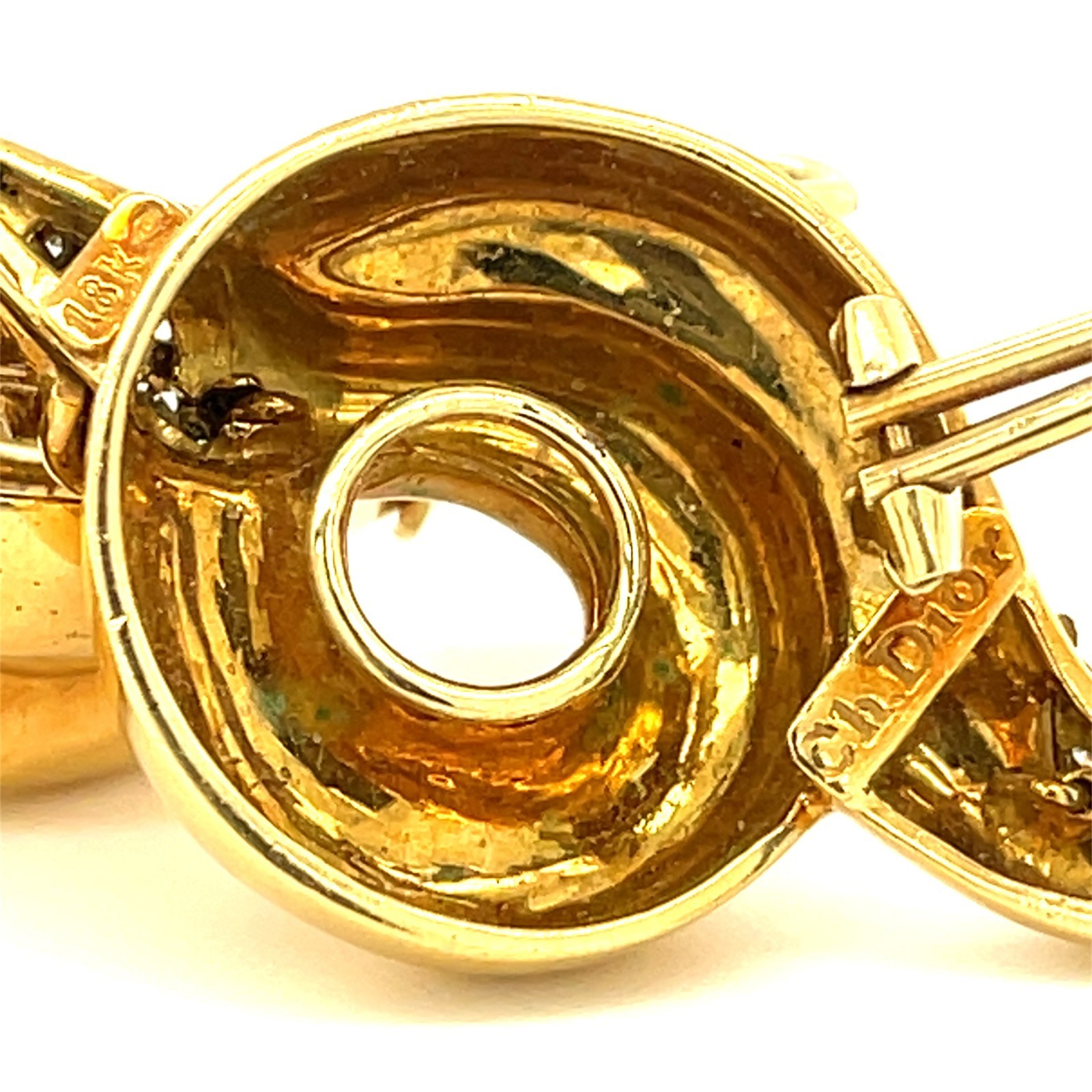 Christe Dior 18k or Jaune Serpent Bobine Boucles D'Oreilles W/Diamant Superbe