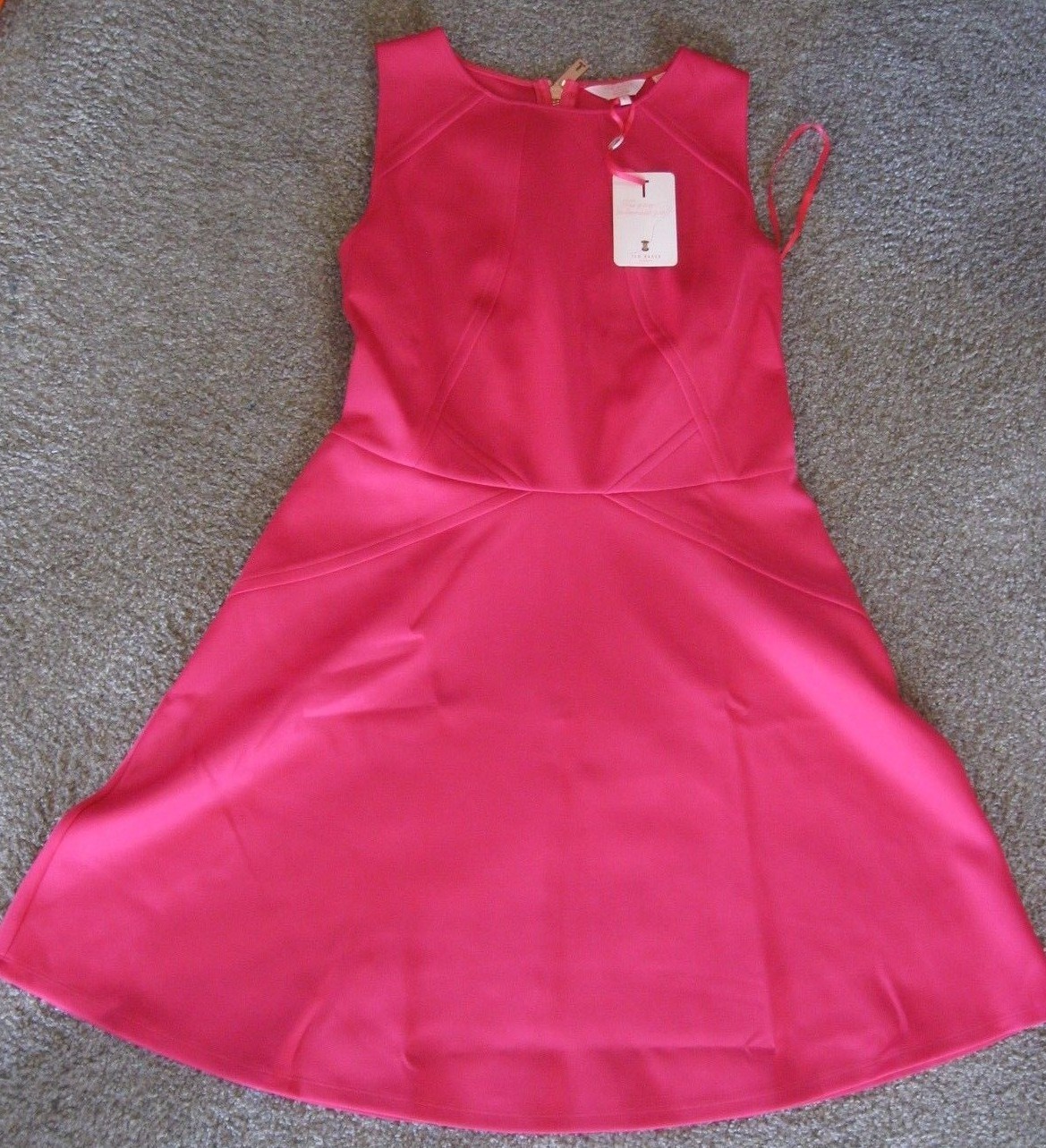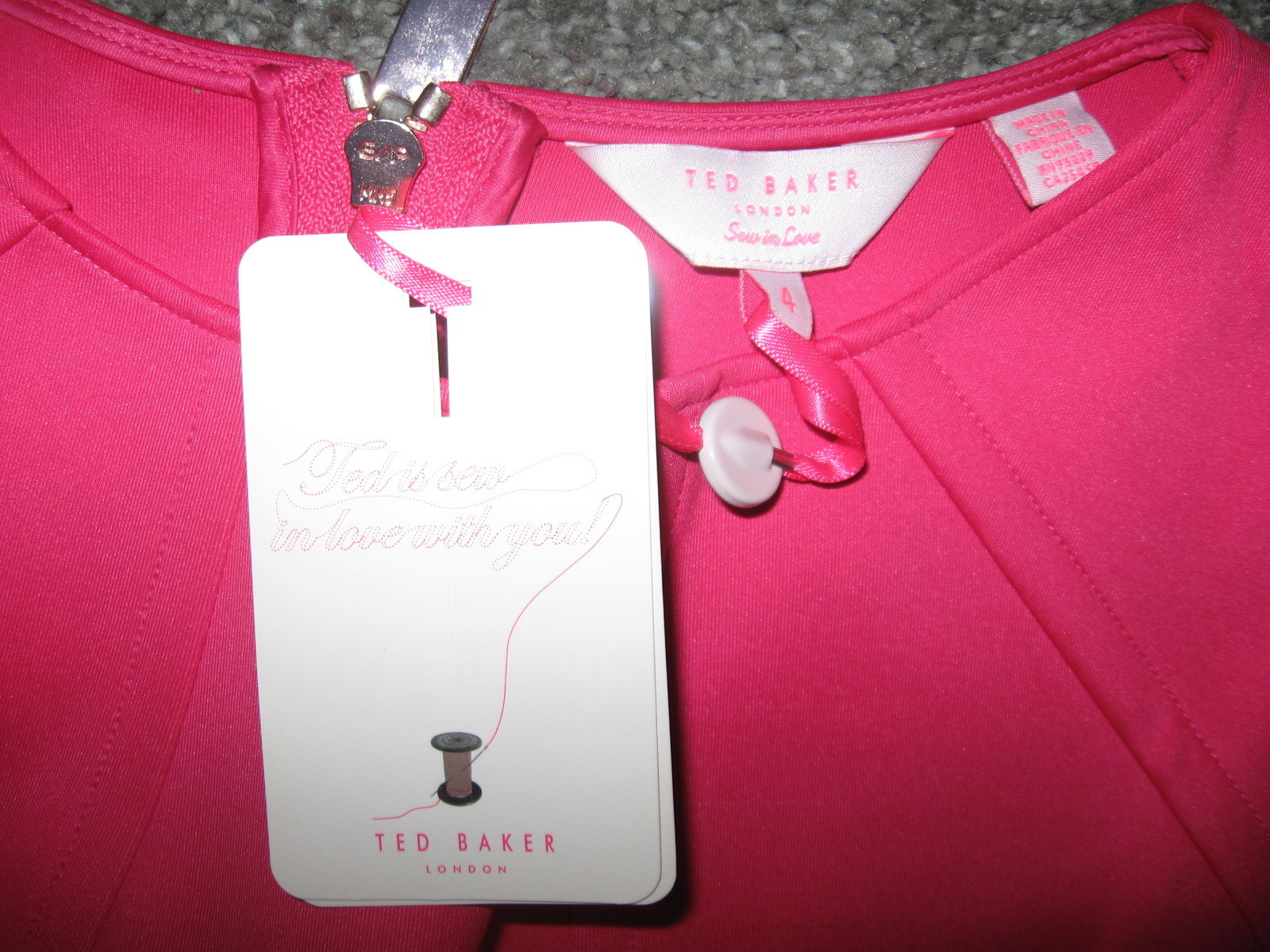 Questo e un ottimo vestito. Questo e il famoso Ted Baker e devi amarlo. Questo e l'abito in edizione speciale ("Cuci innamorato"). Codice mitton. Fucsia o colore rosa. 88% di poliestere e 12% di elastano.