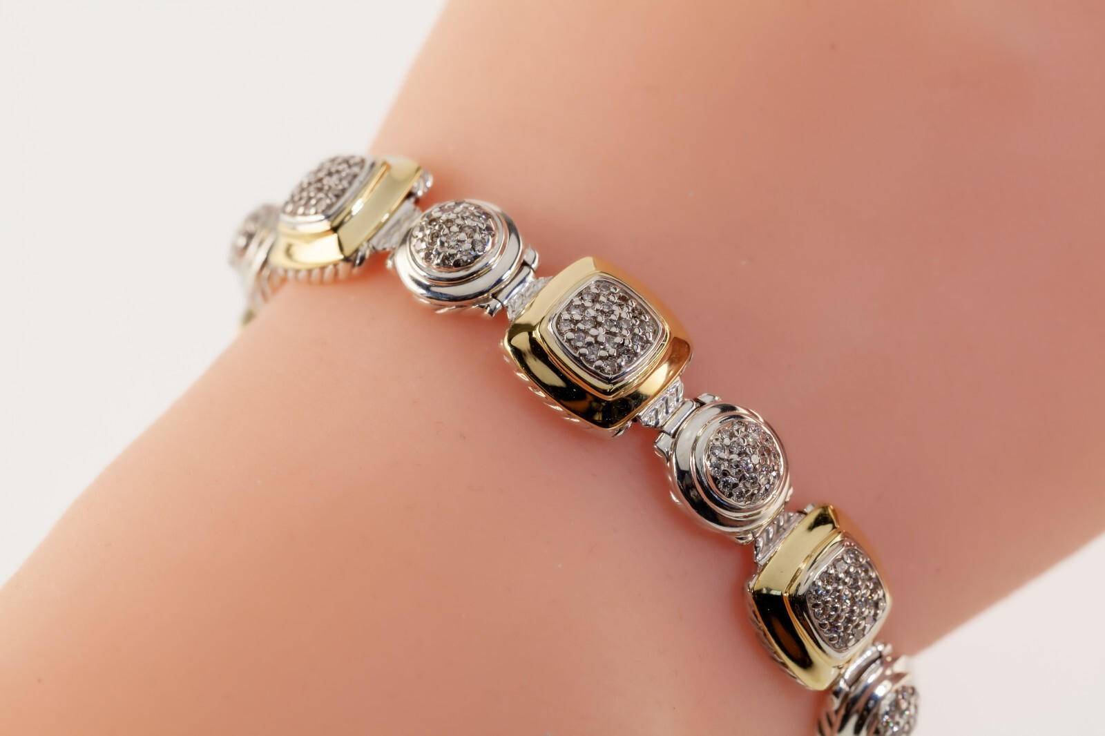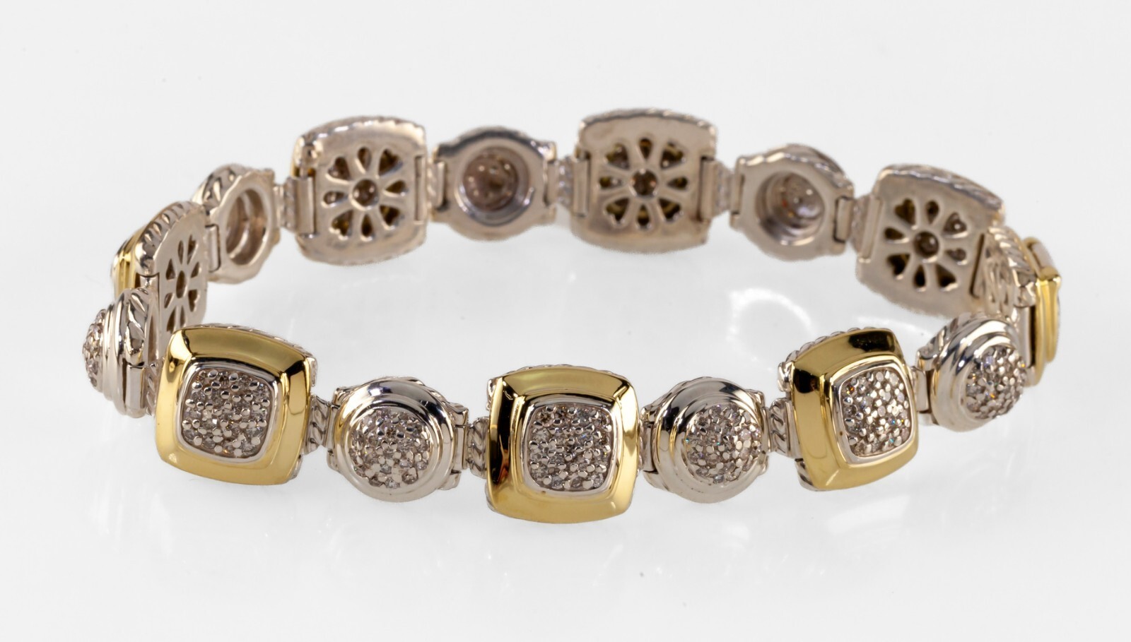 David Yurman Argent Sterling Et 18k or Jaune Albion Station Diamant Bracelet