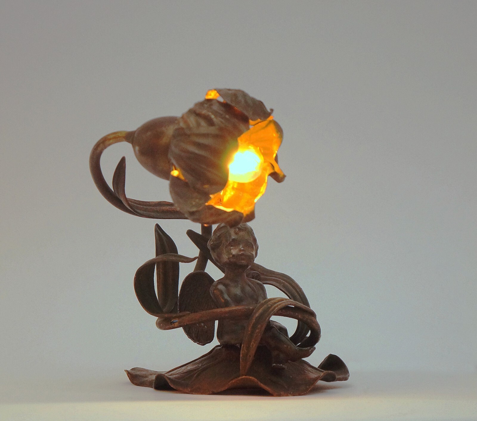 Original Art Nouveau Lamp "CHERUBIN DES FLEURES" Putto Angel Cherub 1910