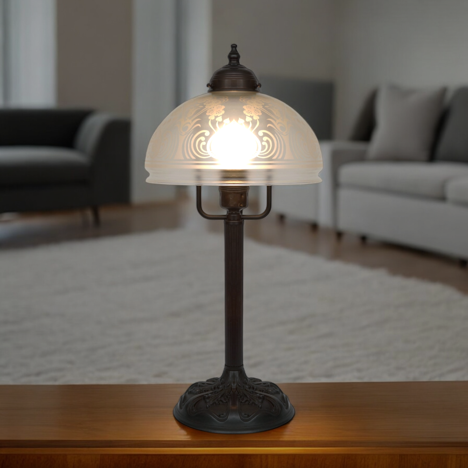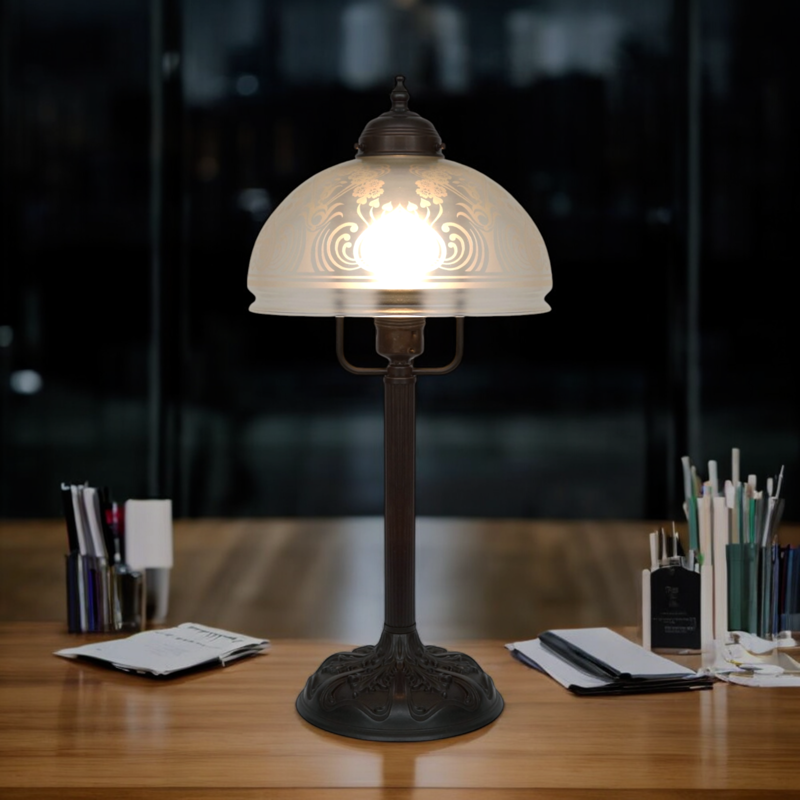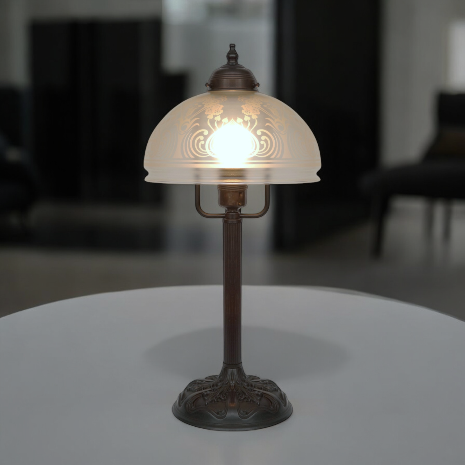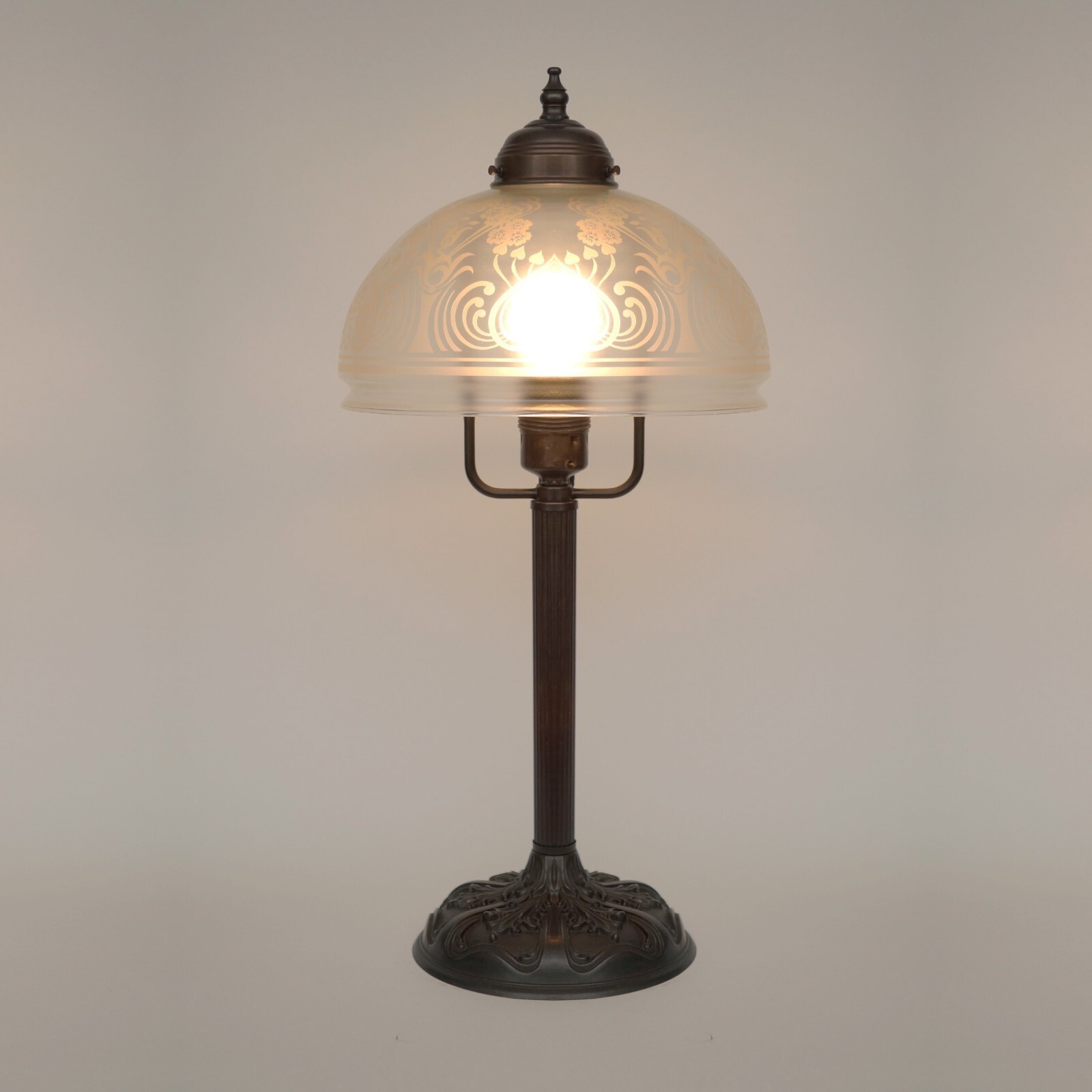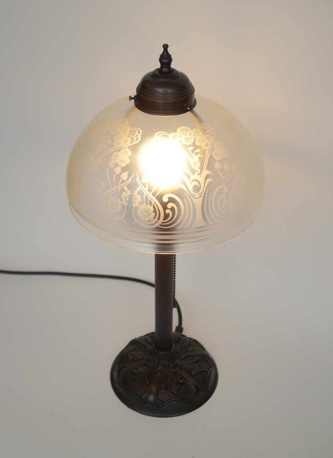 Etched lamp glass.