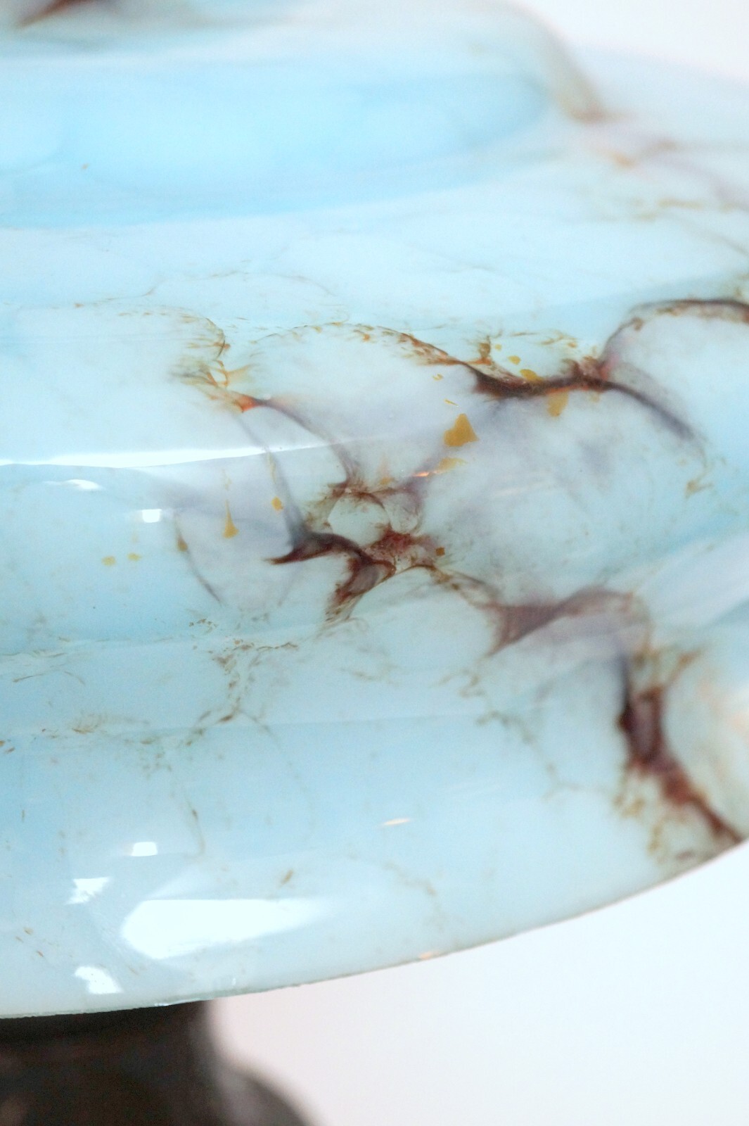 Rare original Art Deco opal glass, sky blue, Braun marbled with Fantastic lighting effect.