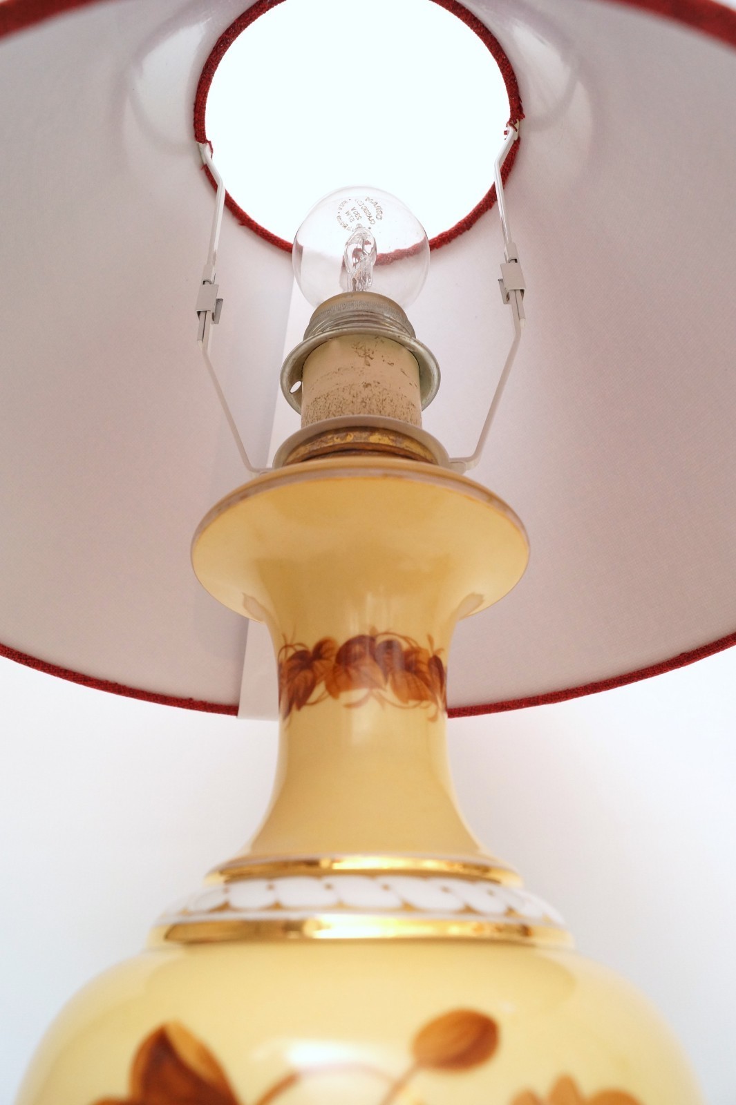 Around 1910, ceramic gear, new fabric screen, total height approx. 53 cm, new electrics