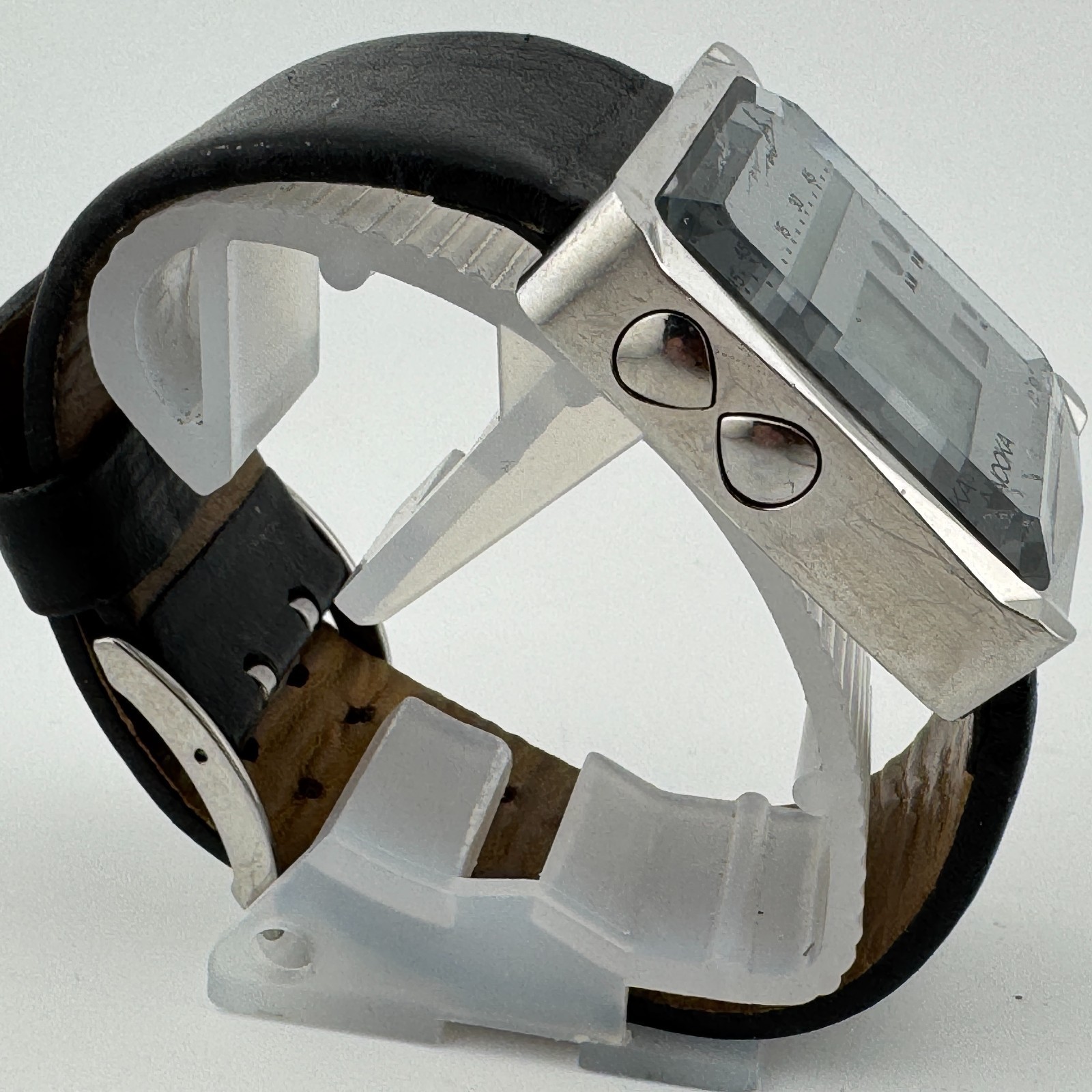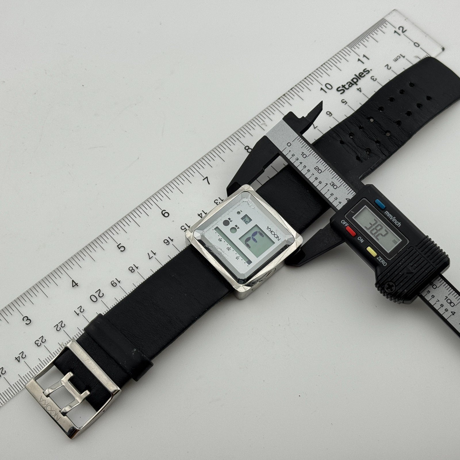 Nooka Quartz Watch Men Silver Square Digital Alarm Chrono Leather New Battery
