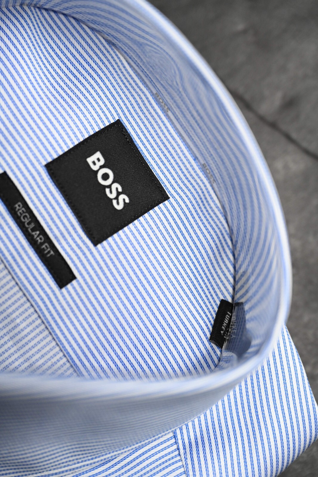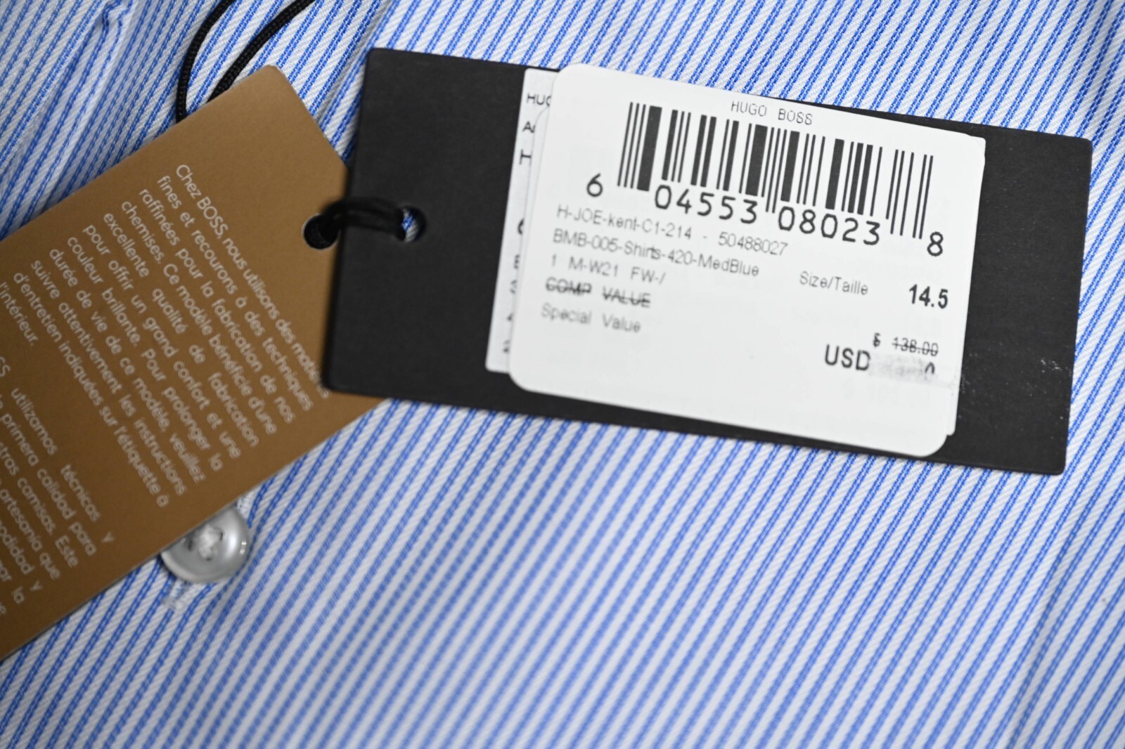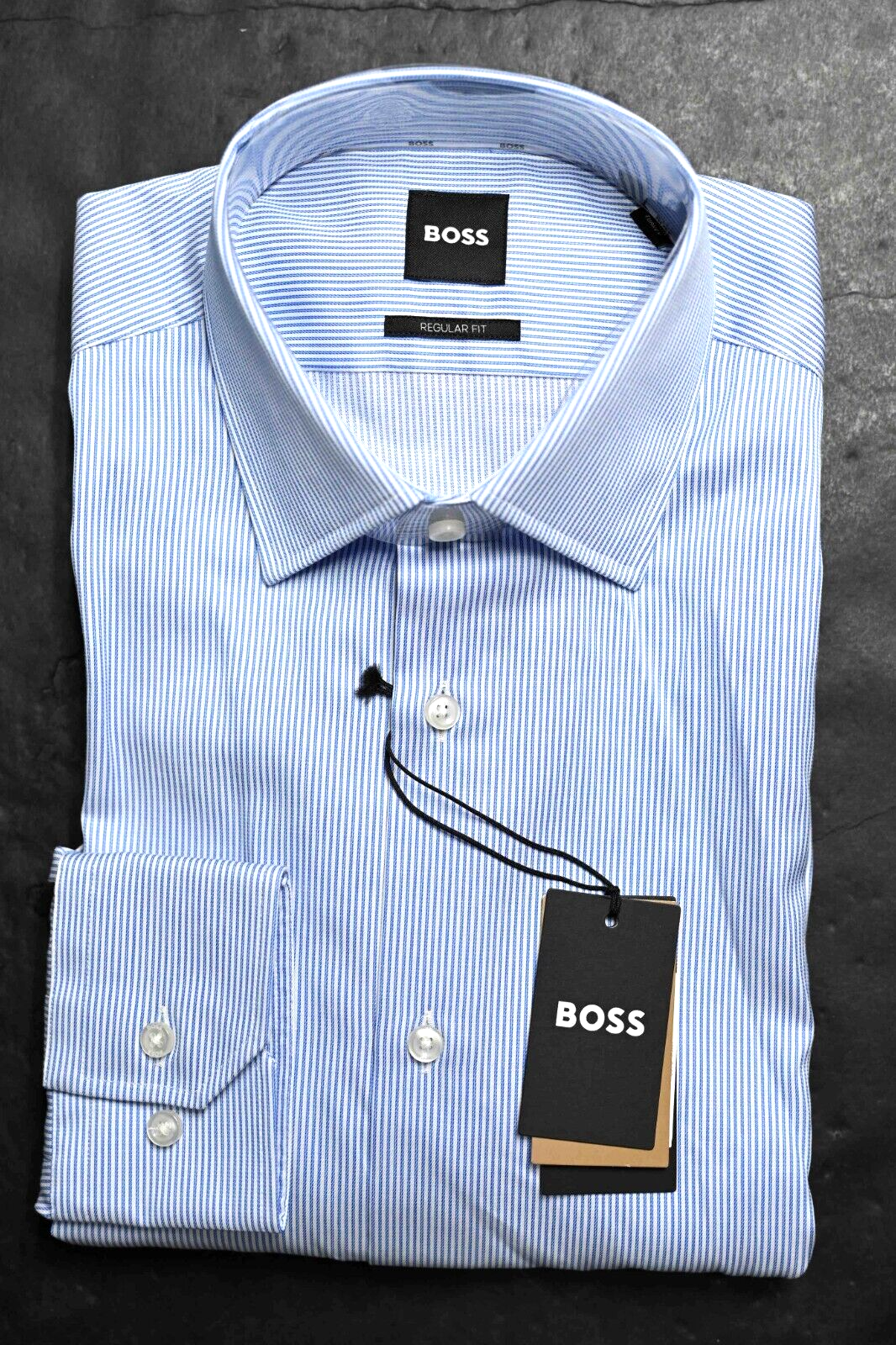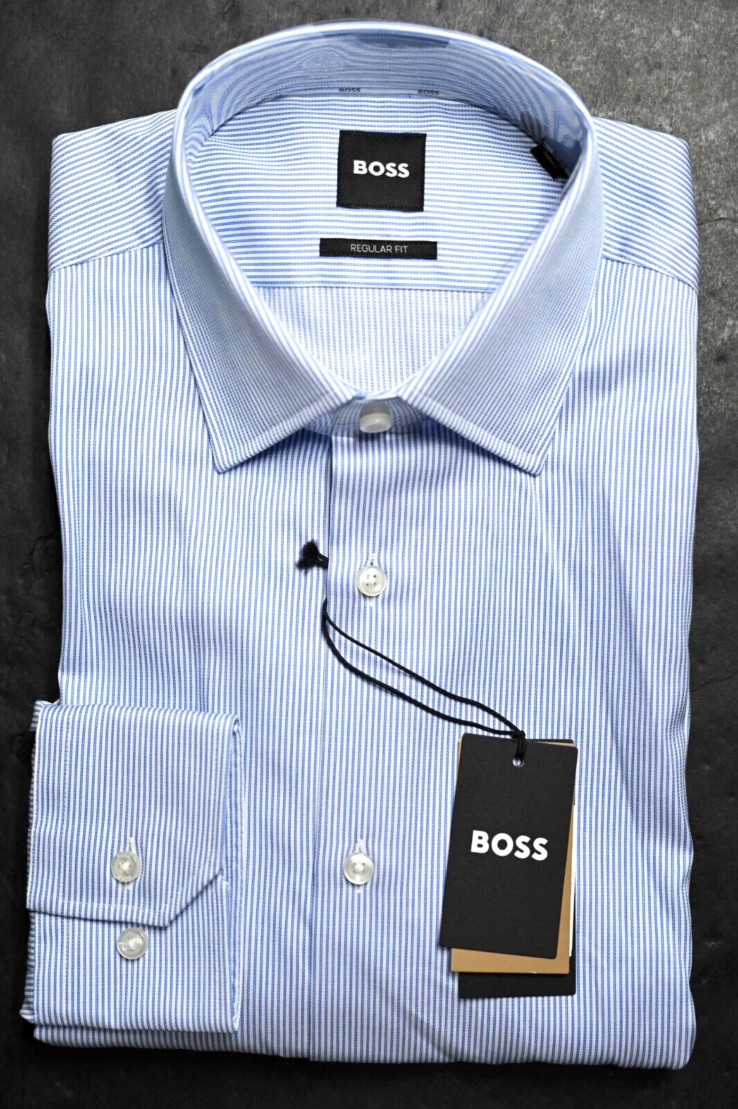 NWT Hugo Boss Men's Joe Kent Regulation Fit Med Blue Striped Cotton Dress Shirt