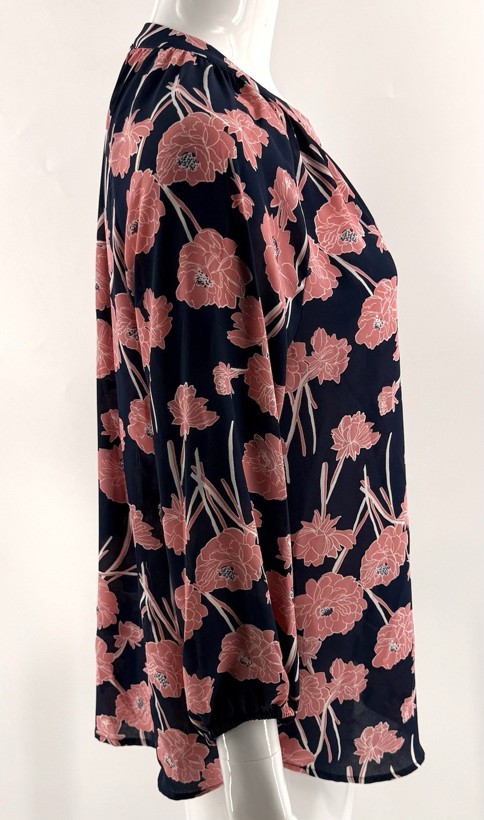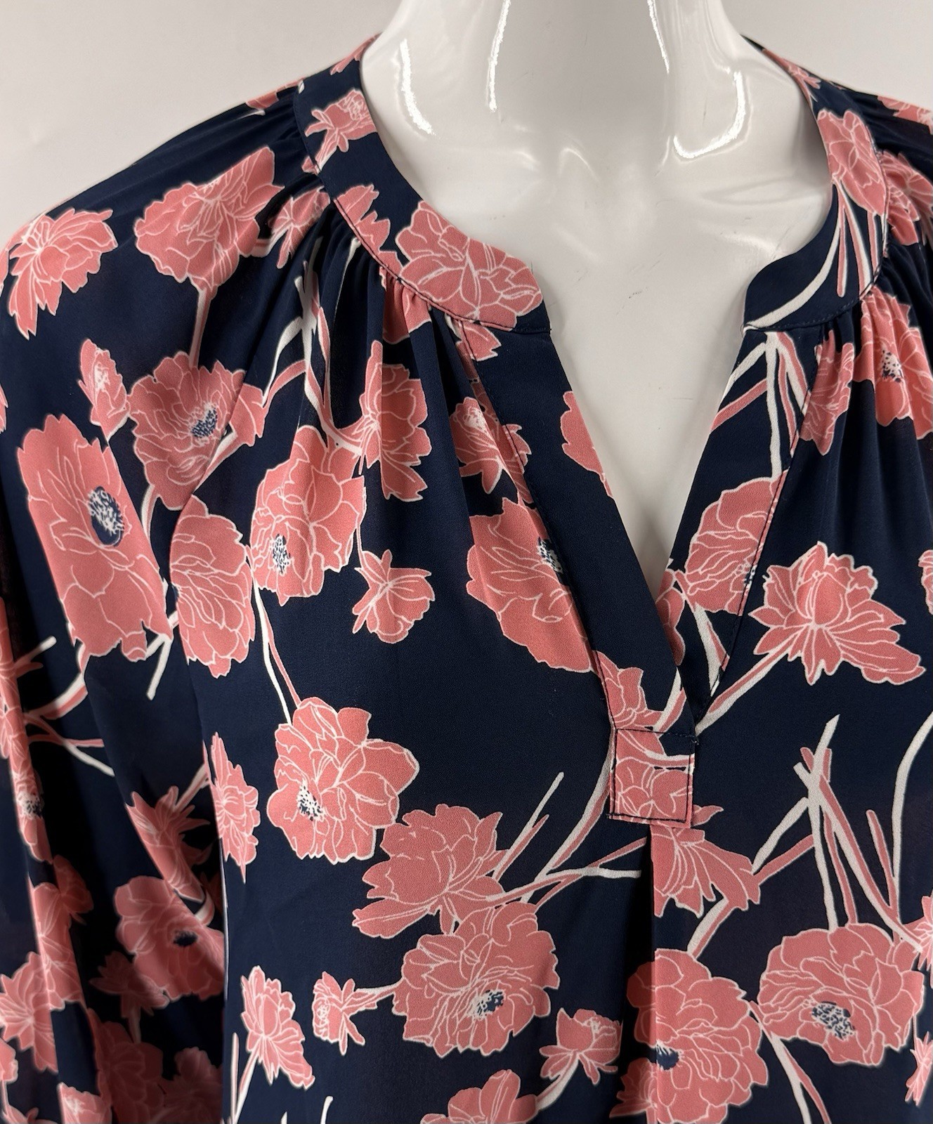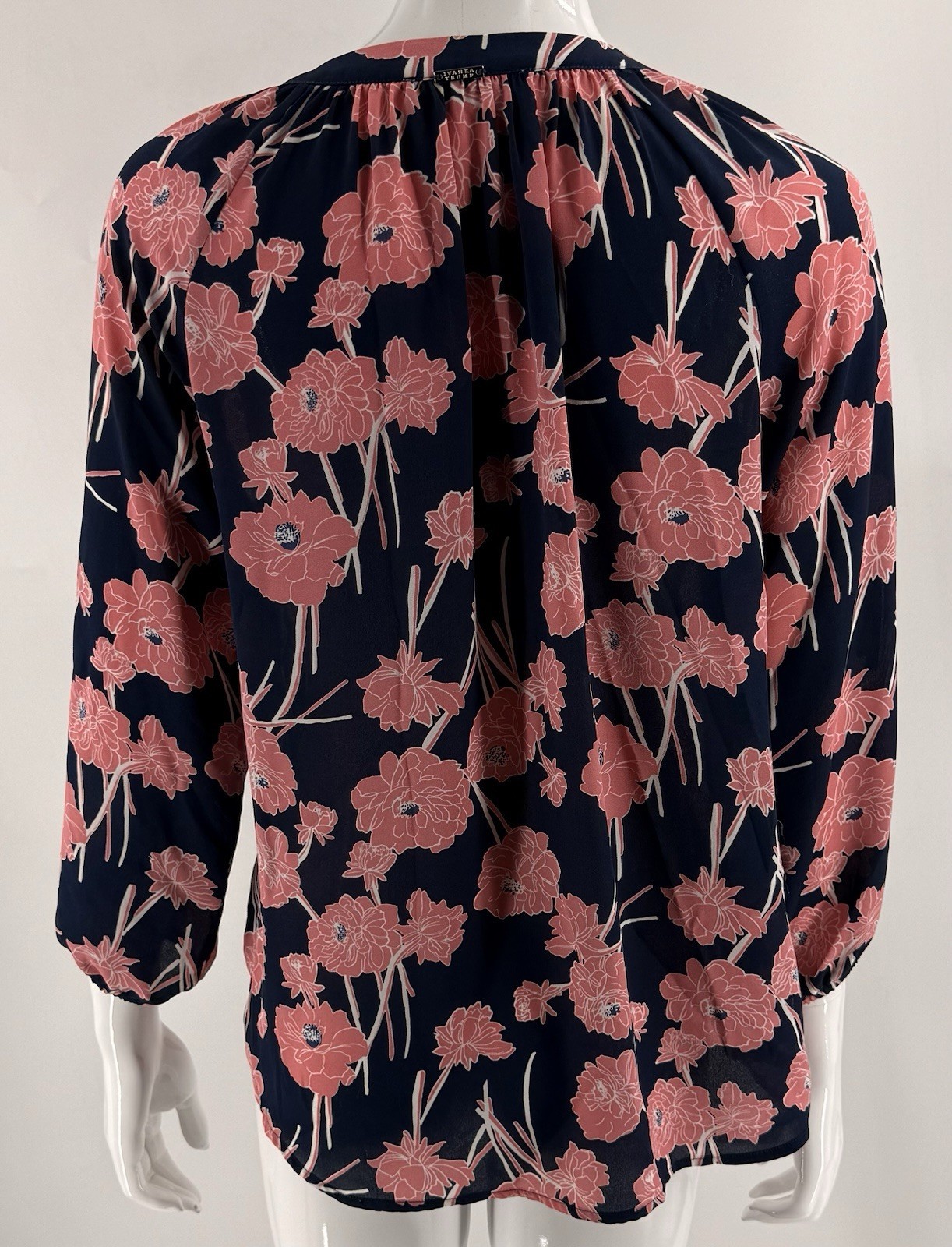 Ivanka Trump Womens Popover Blouse Top Size Small Blue Pink Floral Split Neck
