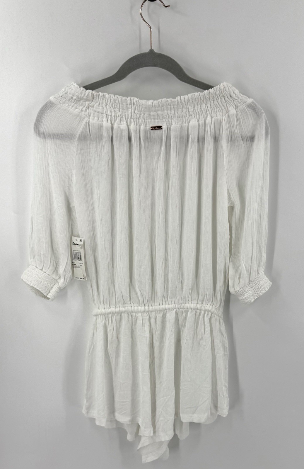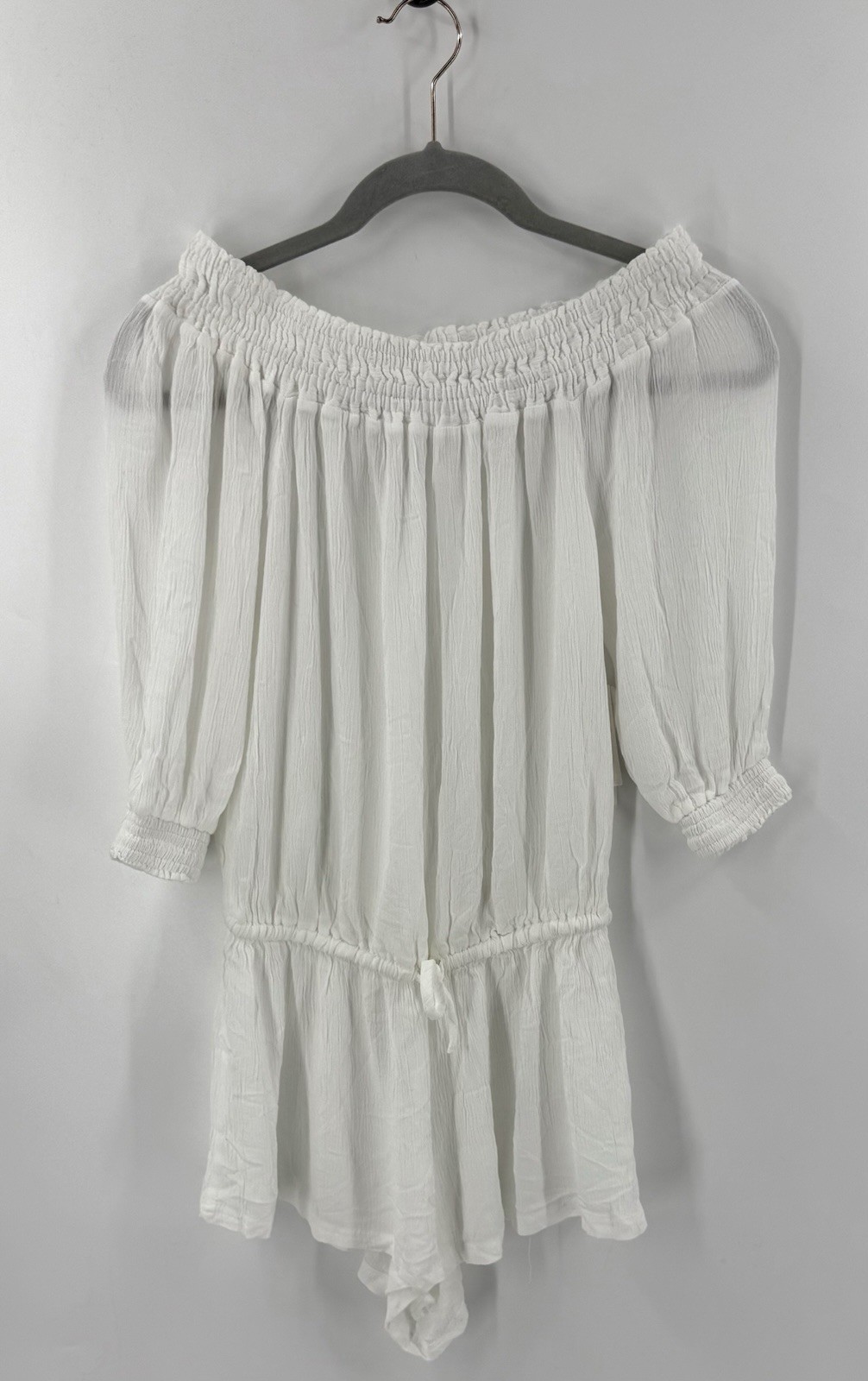 Raisins Womens Swimsuit Coverup Romper Size Small White Smocked Beach NEW