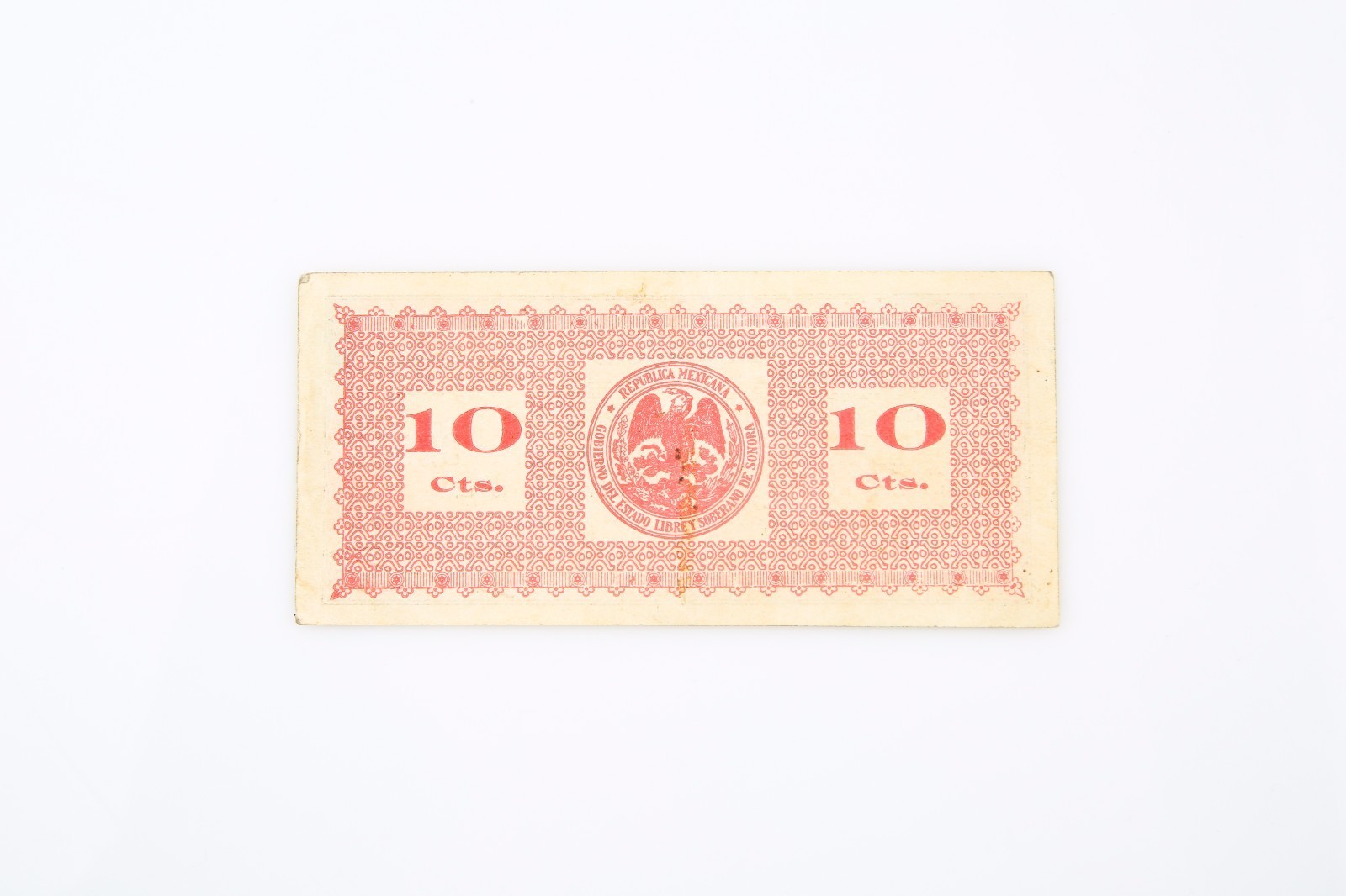 1913-1914 Mexico 10 Centavos Au-55 Net Estado de Sonora sobre S1063 sin circular