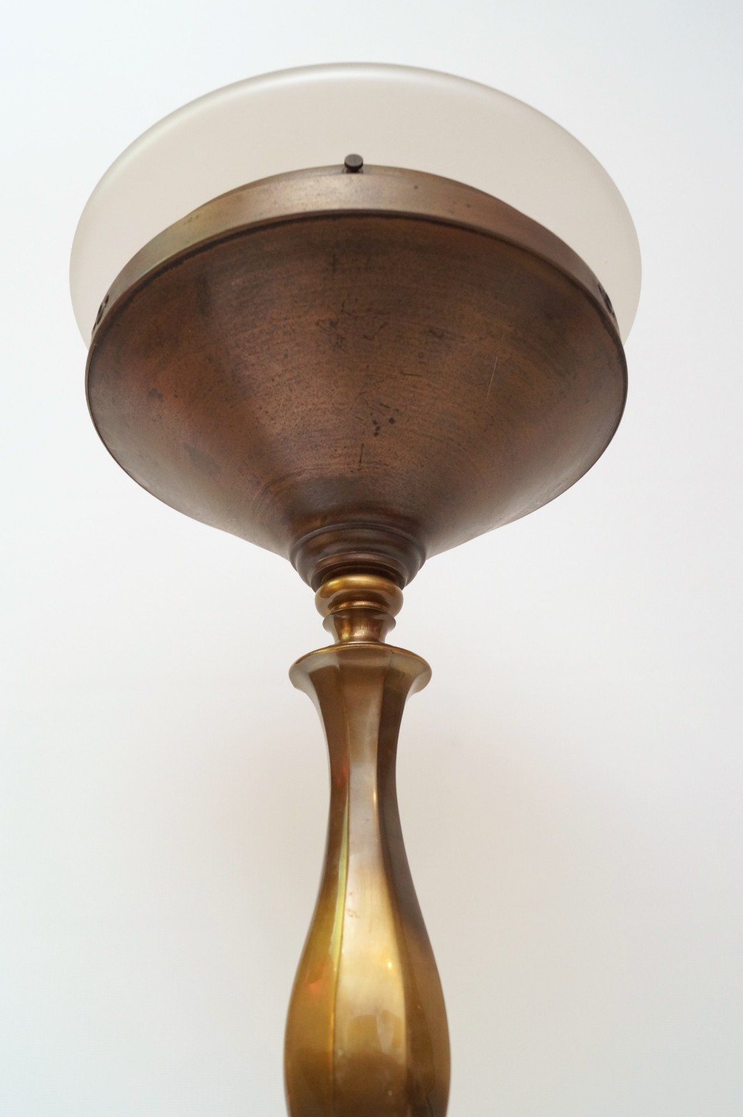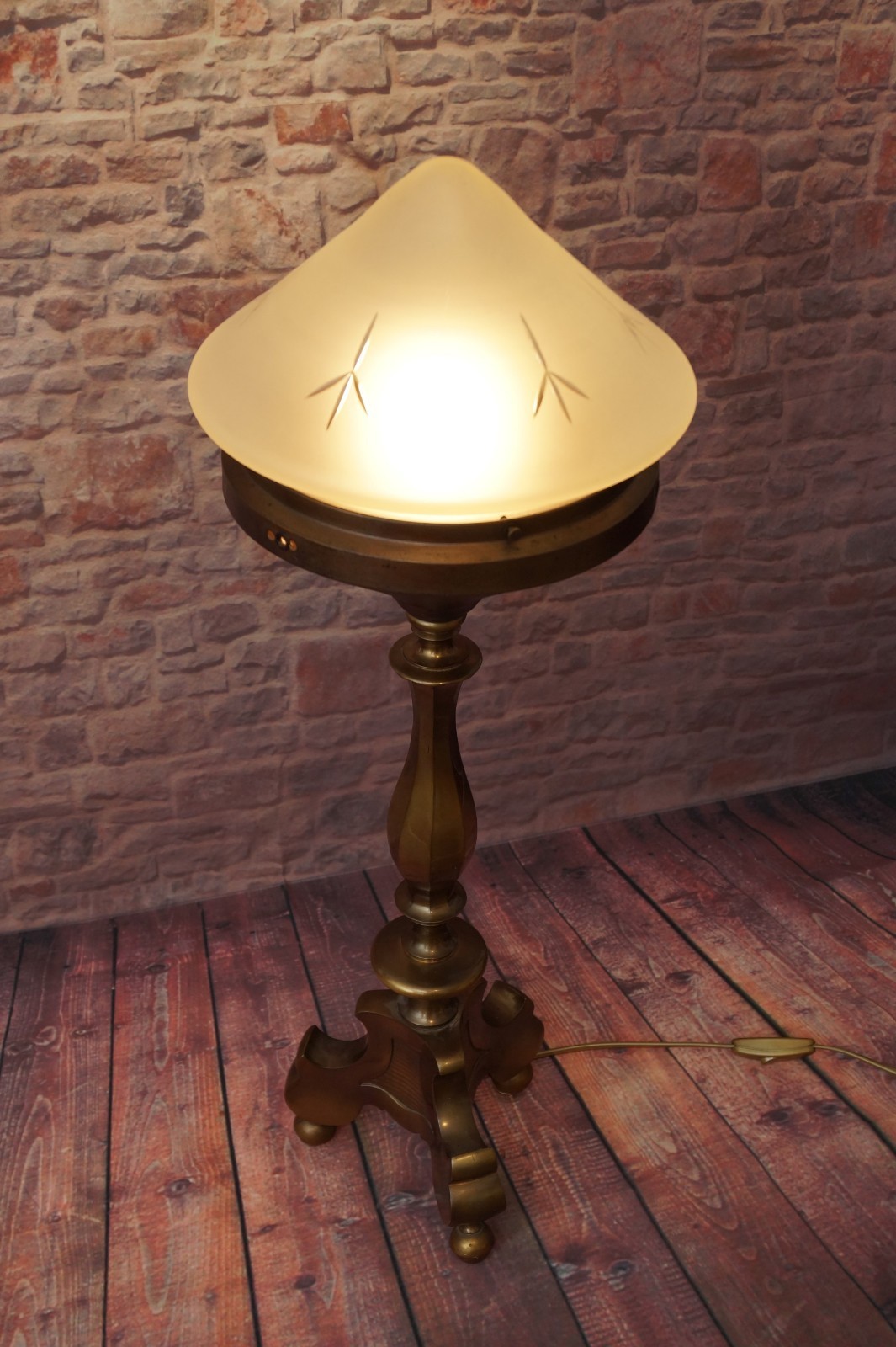 Vers 1920, un engrenage en laiton lourd, un verre grave, une hauteur d'env. 67 cm, Nouvelles electriques