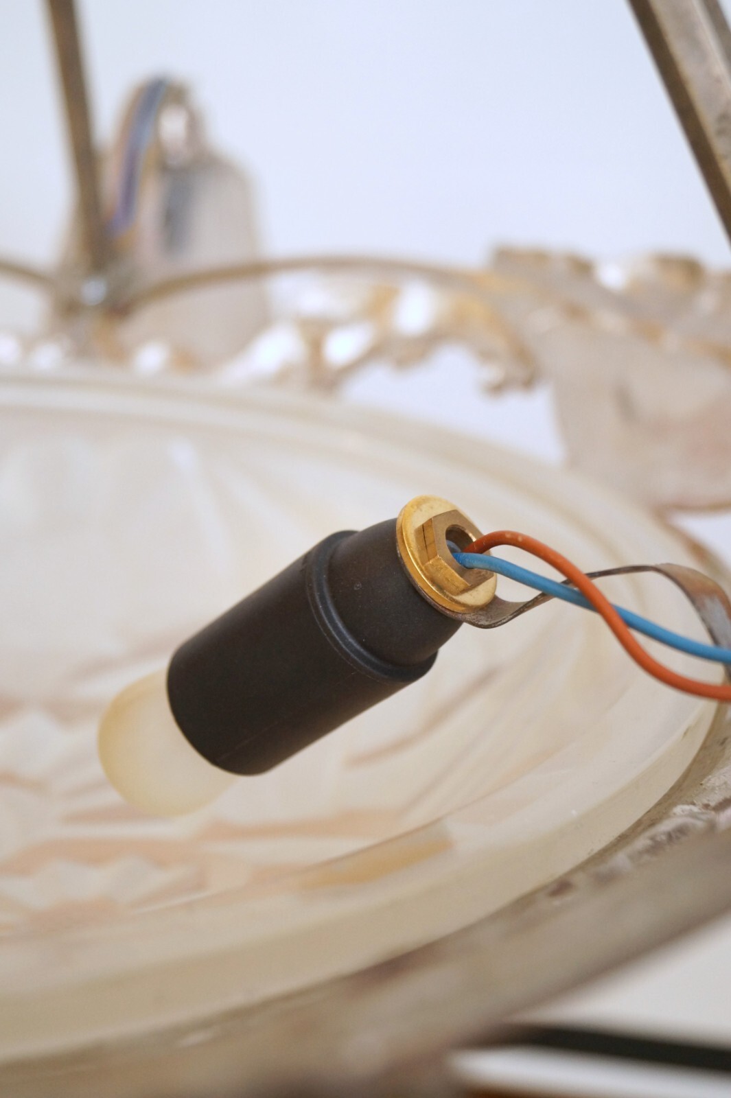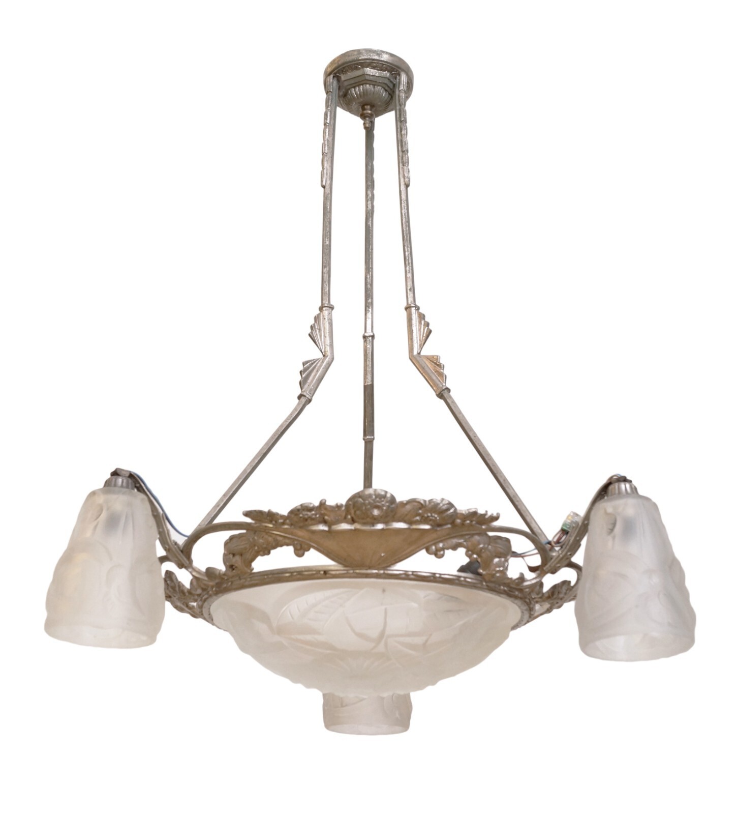 Art Déco Plafonnier 1920 Nickel Lampe à Suspension Argent Original Degué