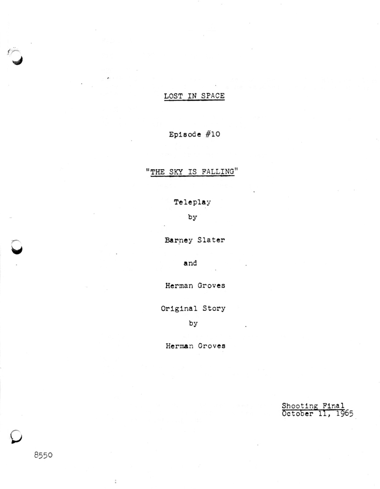 1965’s LOST IN SPACE: THE SKY IS FALLING Episode #10 TV series script