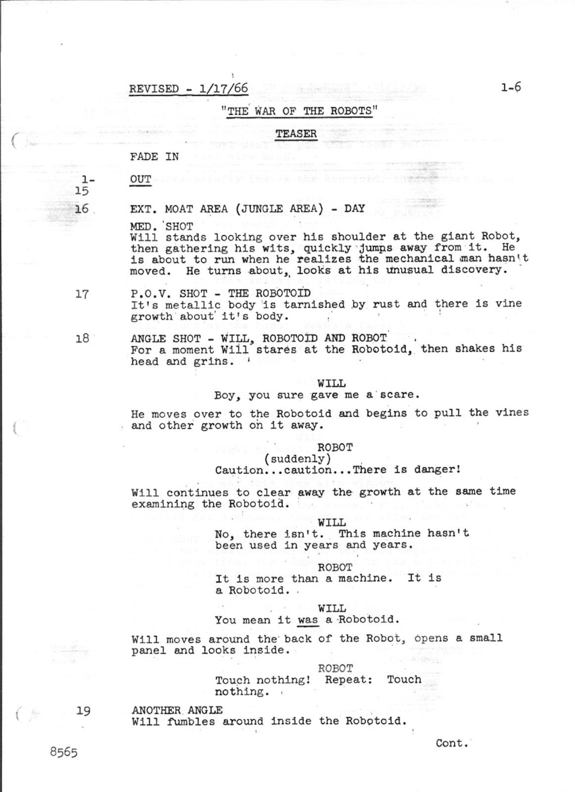 1965’s LOST IN SPACE: WAR OF THE ROBOTS Episode #20 TV series script