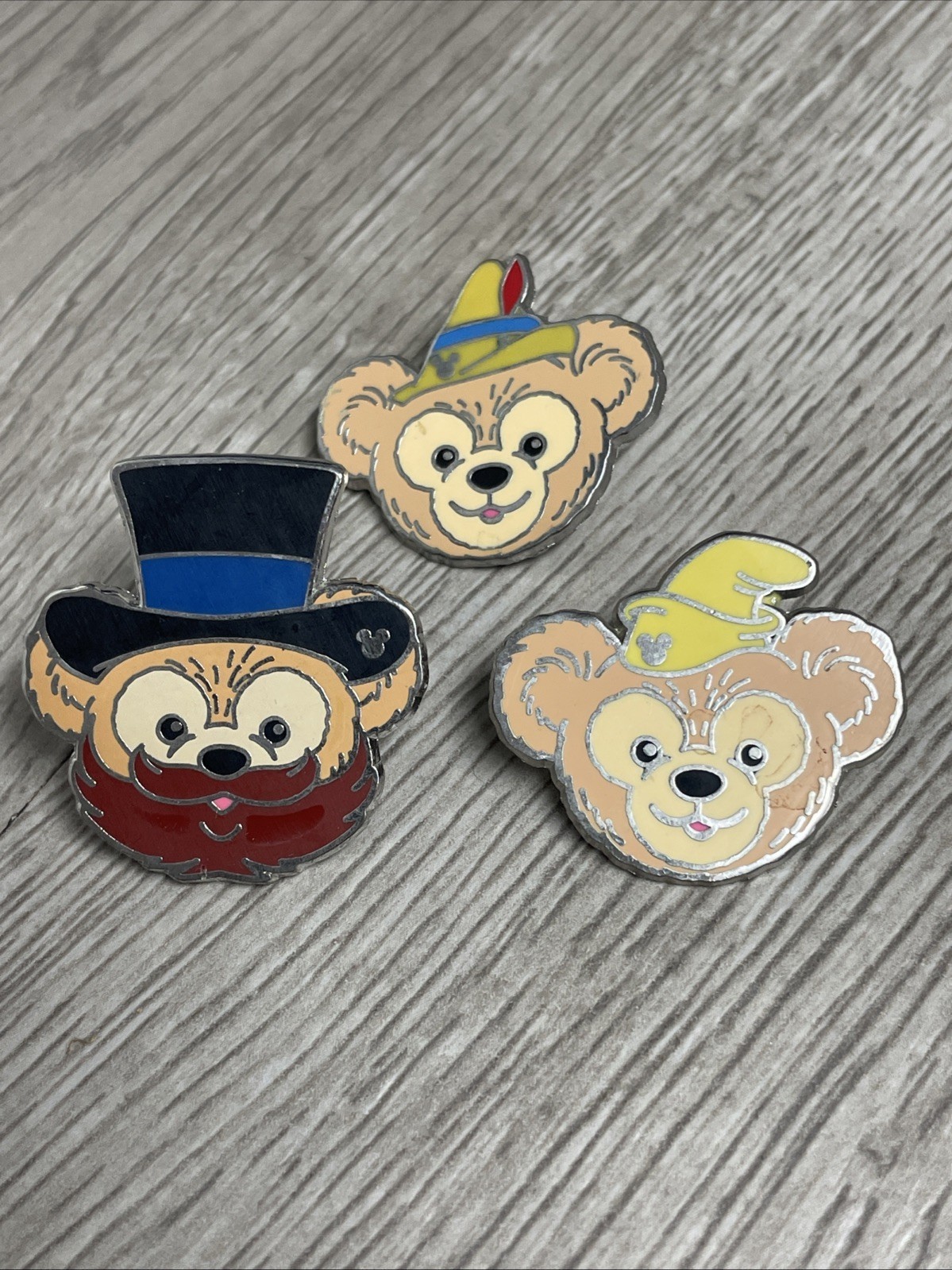 Preowned, good condition. Minor wear. Part of the Hidden Mickey Duffy series. All have the pin back on them. One pin has a post that is slightly bent to the side but it doesn't affect putting the pin back on it.
