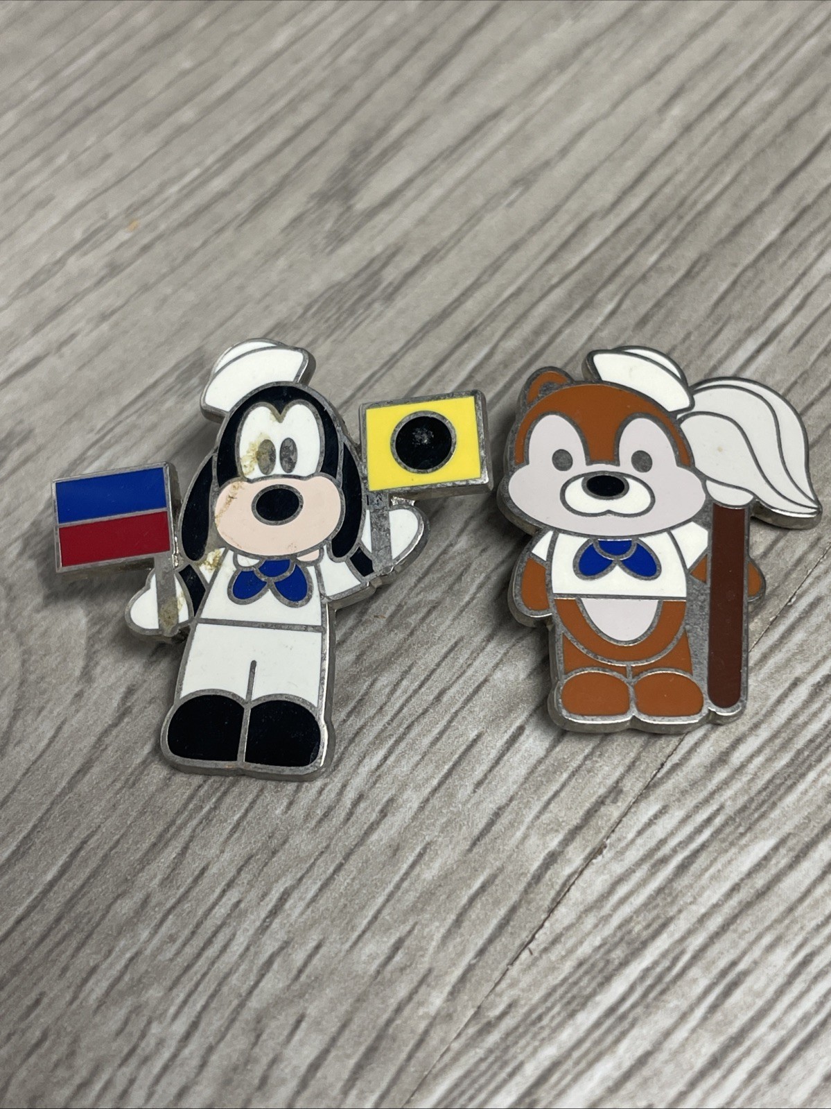 Preowned, good condition. Minor wear. Part of the Disney Cruise Line Mini Cuties series. All have the pin back on them. One has a bent post but still able to put the pin back on. There is one duplicate pin and one extra DCL pin.