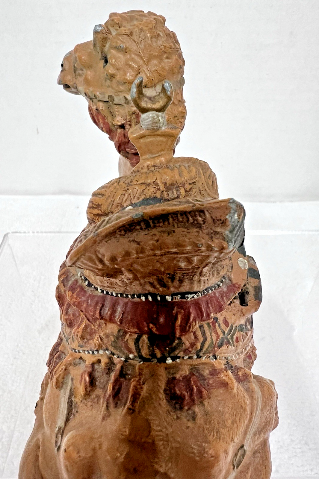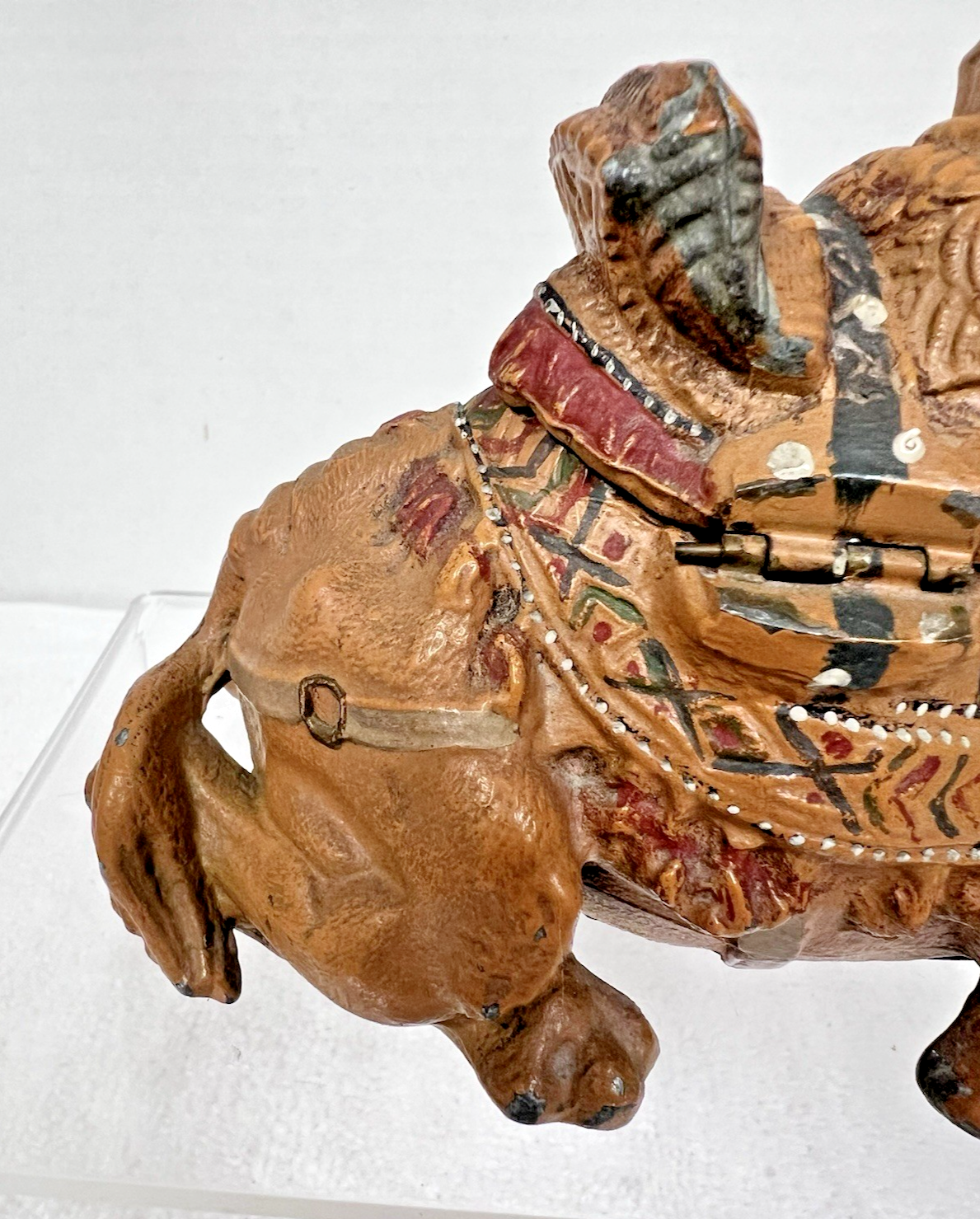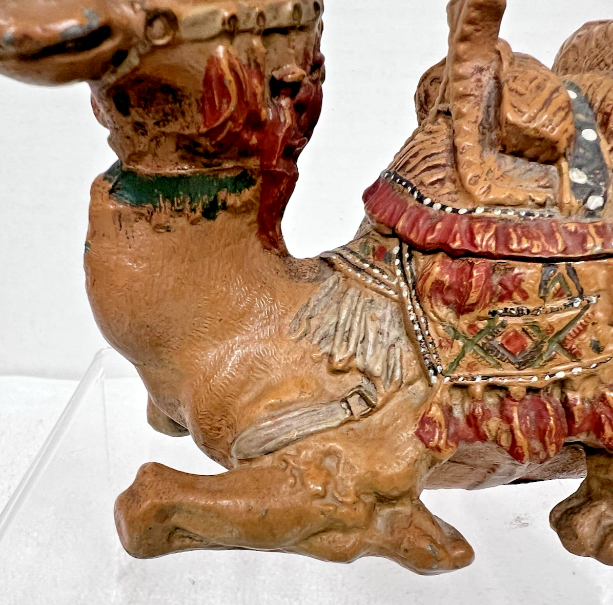 Antique Figural Camel Desk Inkwell Cold Painted Metal w Glass Insert 1900's