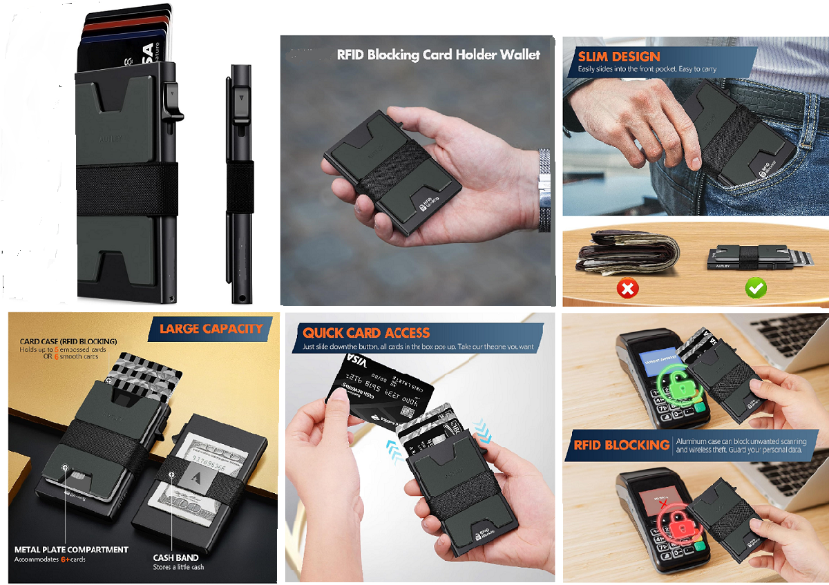 Cadillac 3d Logo Slim Card Minimalist Pop Up Wallet RFID Blocking With Cash Band